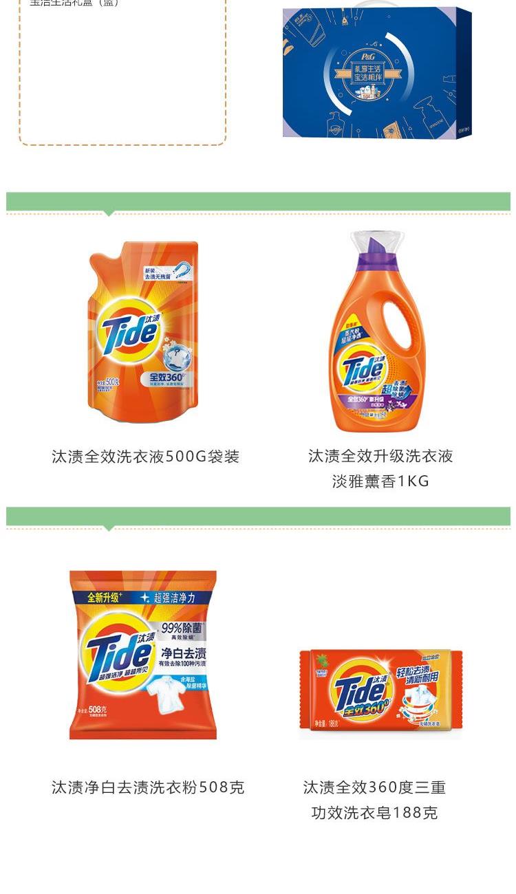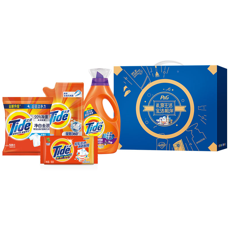汰渍全效升级洗衣液淡雅薰香1KG 汰渍全效洗衣液500G袋装 汰渍净白去渍洗衣粉508克 汰渍全效360度三重功效洗衣皂188克 宝洁生活礼盒(蓝)