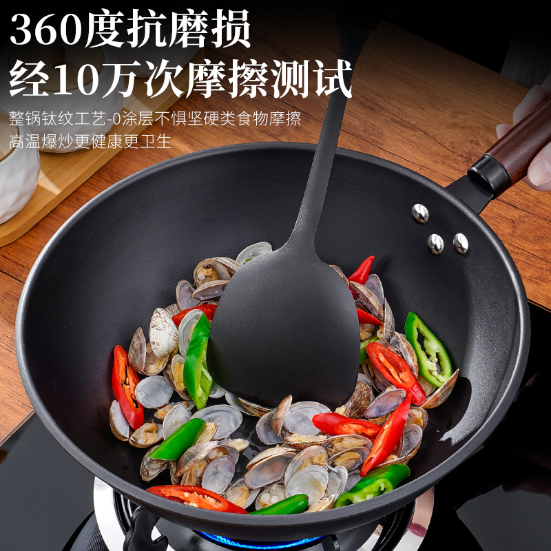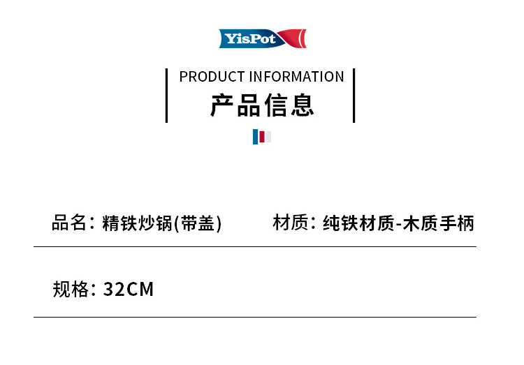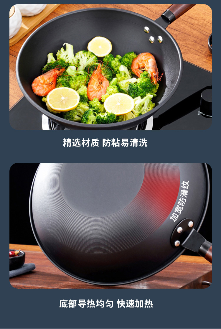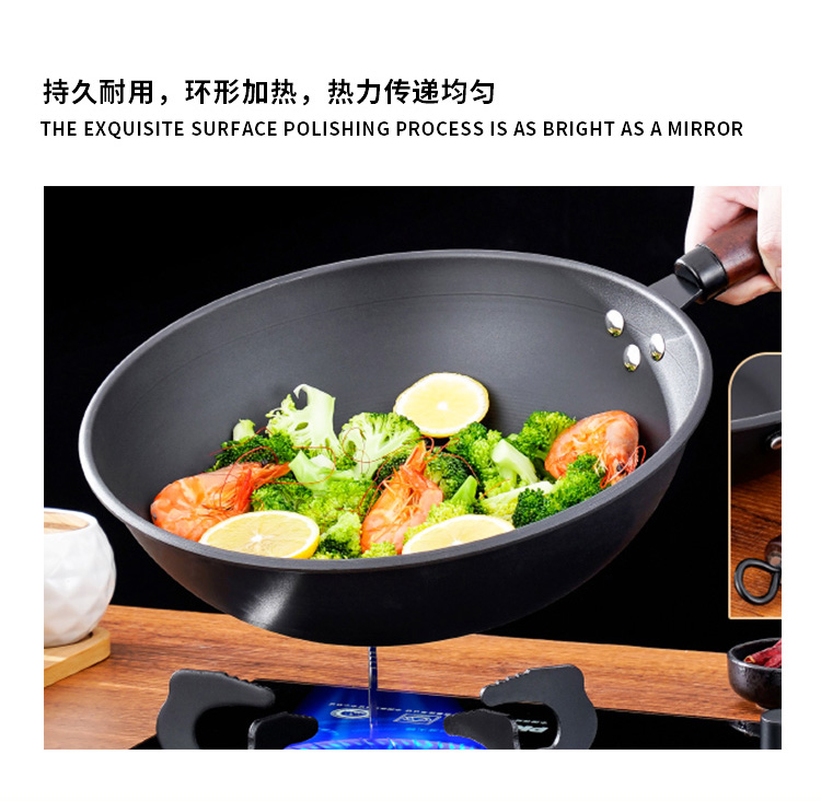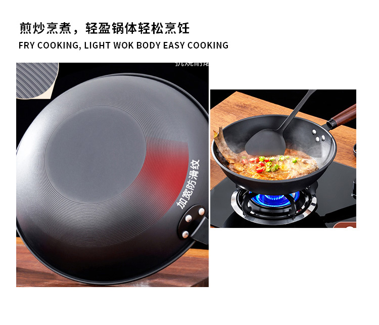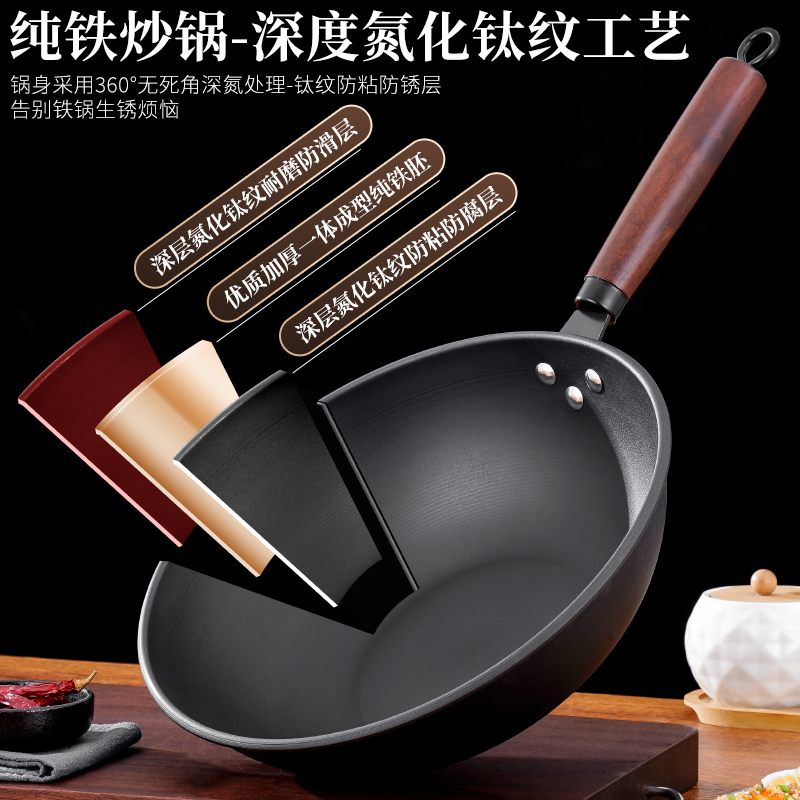 规格:32CM 型号:YP-2038 材质:精铁 箱数:8套/件 产品介绍:防烫木质手柄,可拆卸 立体圈纹,防滑稳固 深层氮化无涂层不粘工艺 可视锅盖,掌握烹饪节奏