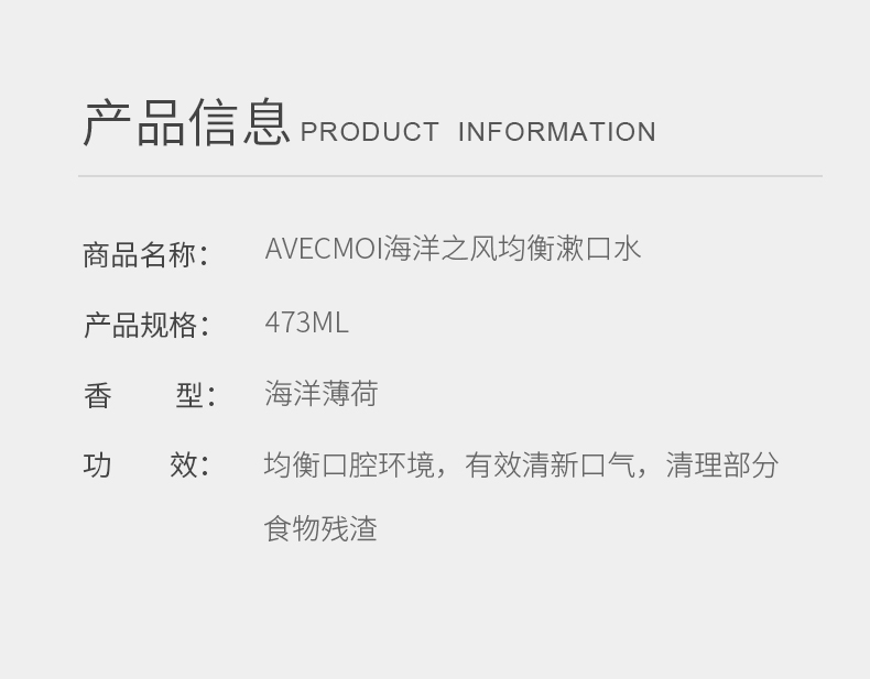 AvecMoi海洋之风益生菌均衡漱口水一瓶*473ml