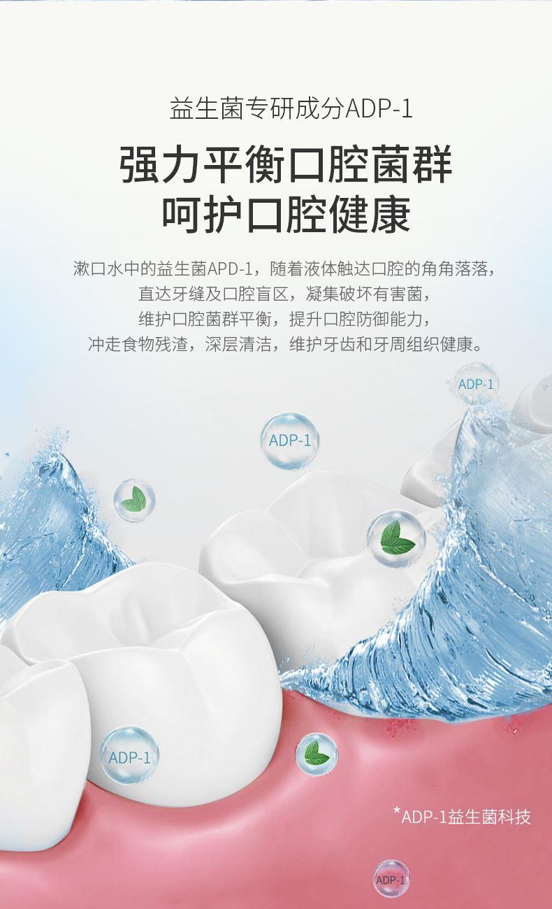 容量:473ml 型号:SK-JH473-1 1.添加益生菌ADP-1,深层清洁,持久清新。 2.量贩版蓝瓶,高颜值很实惠,是清新薄荷口味,清新自然香味。 3.0酒精无添加,口感温和,漱一漱,口腔烦恼全没有。 4.益生菌粘附口腔,帮助抑制口腔有害菌,维持口腔菌群平衡。 5.深层清洁,直达牙缝深处,冲走食物残渣。