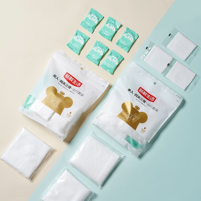 毛巾/浴巾:无纺布 马桶垫:木浆纸+PE膜 压缩毛巾30cm*40cm*6个 浴巾50cm*80cm*3条 马桶垫40cm*60cm*3片