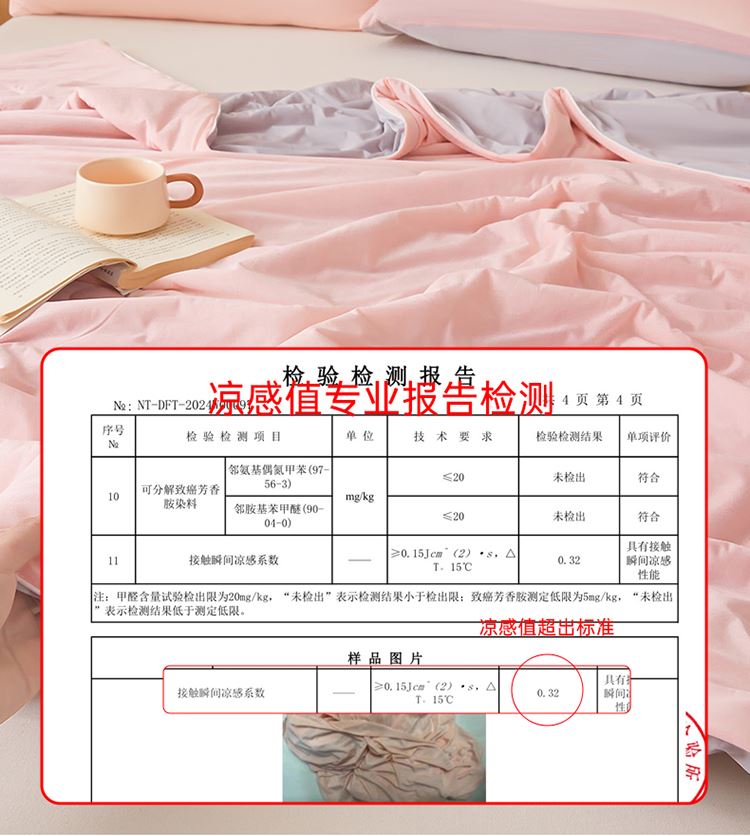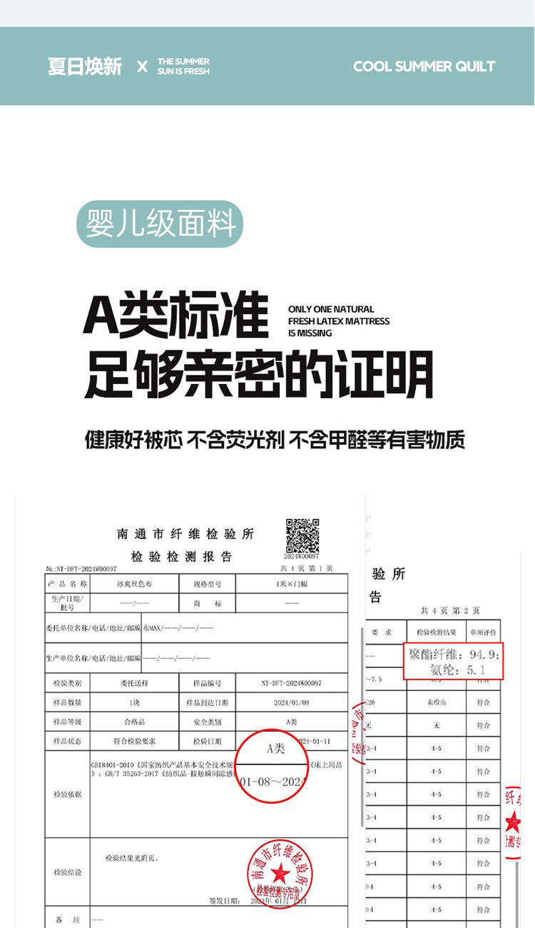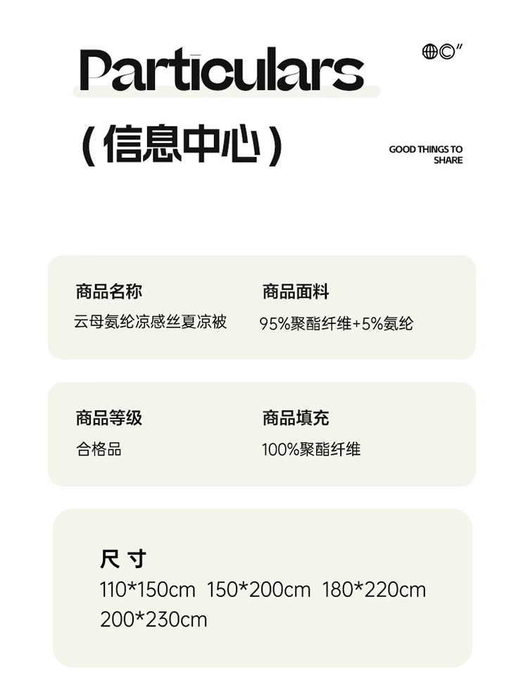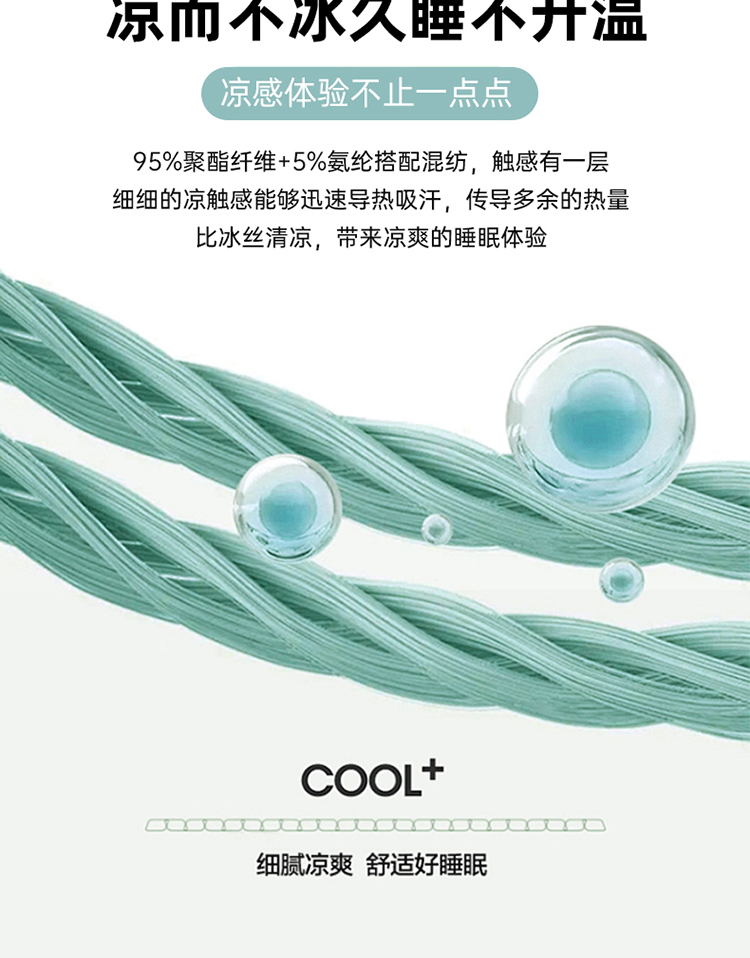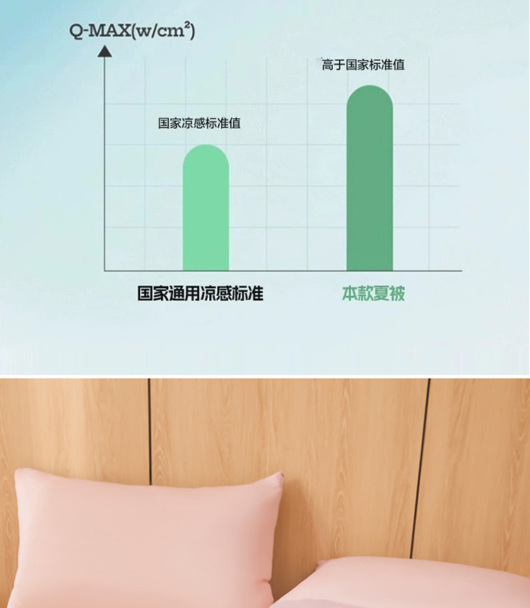 1:清凉夏日体验清凉触感 (云母氨纶凉感丝夏凉被) 2:云母凉感面料体感清凉触感软糯排湿透气会呼吸的睡眠环境 3:*Q-MAX:为衡量皮肤接触面料将皮肤上的热量转移到低温处的性能 数值越大表示越有凉感 尺寸:180x220cm单夏被 重量:1.35kg(净重) 包装:彩盒/礼袋