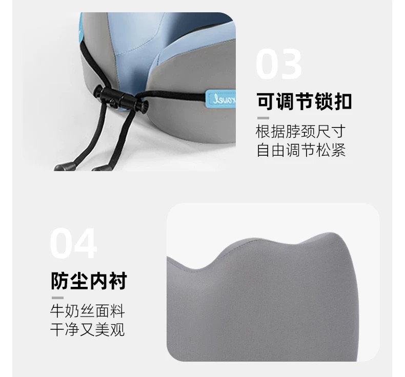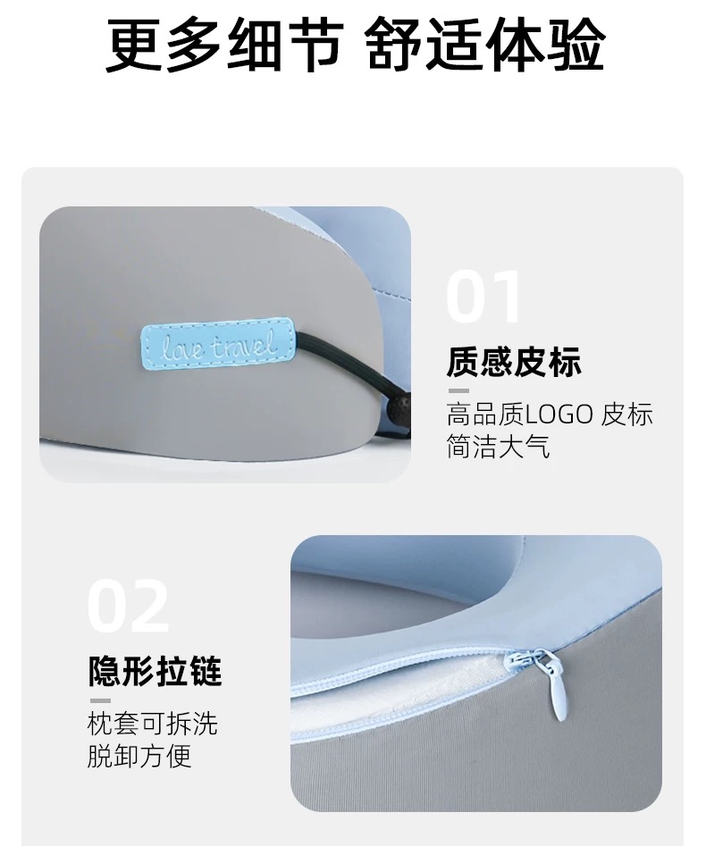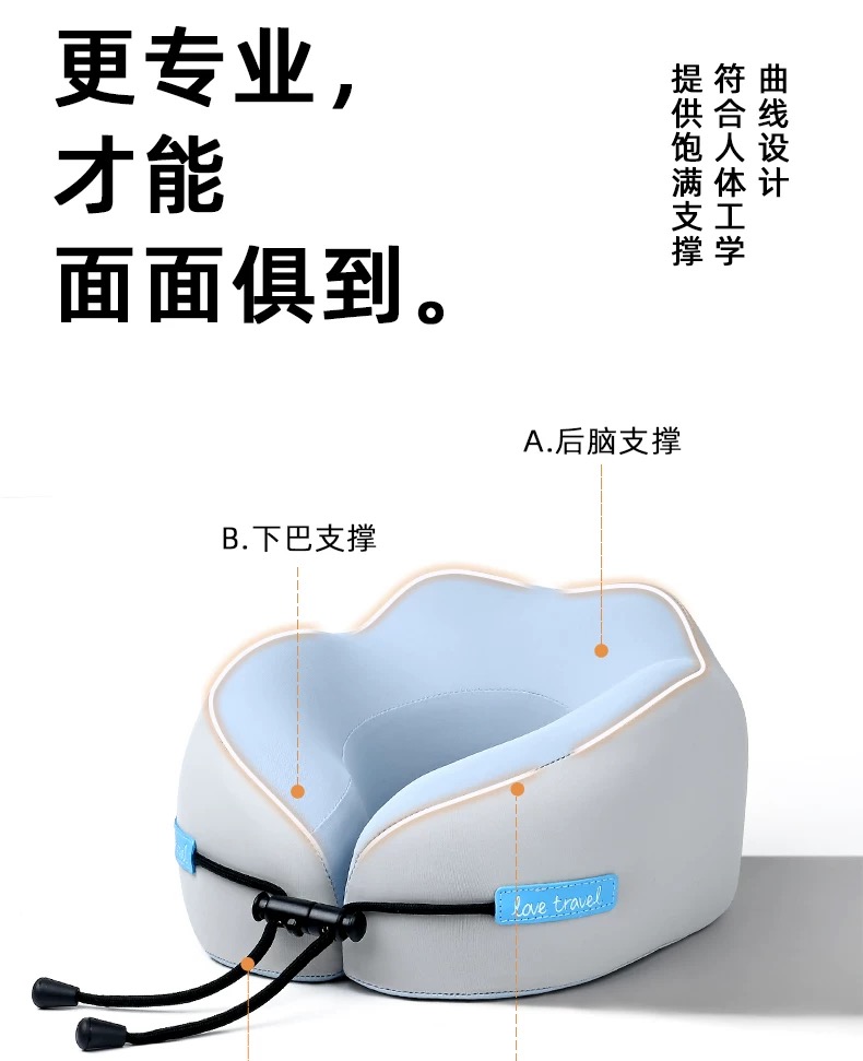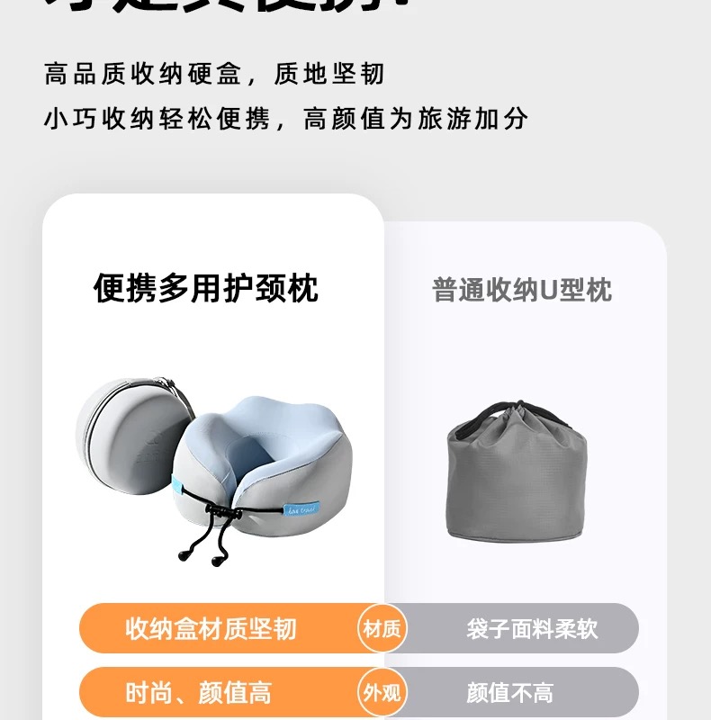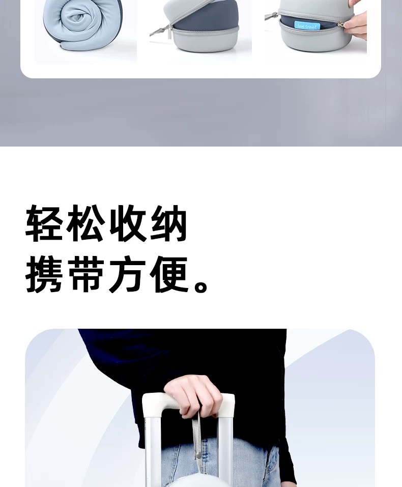 外套:锦纶面料(87% 锦纶,13% 氨纶) 产品特点: 1、人体工程设计支撑更有力 2、慢回弹记忆棉内胆,有效吸收颈部压力 3、轻量出行 便捷收纳盒 一只手机大小