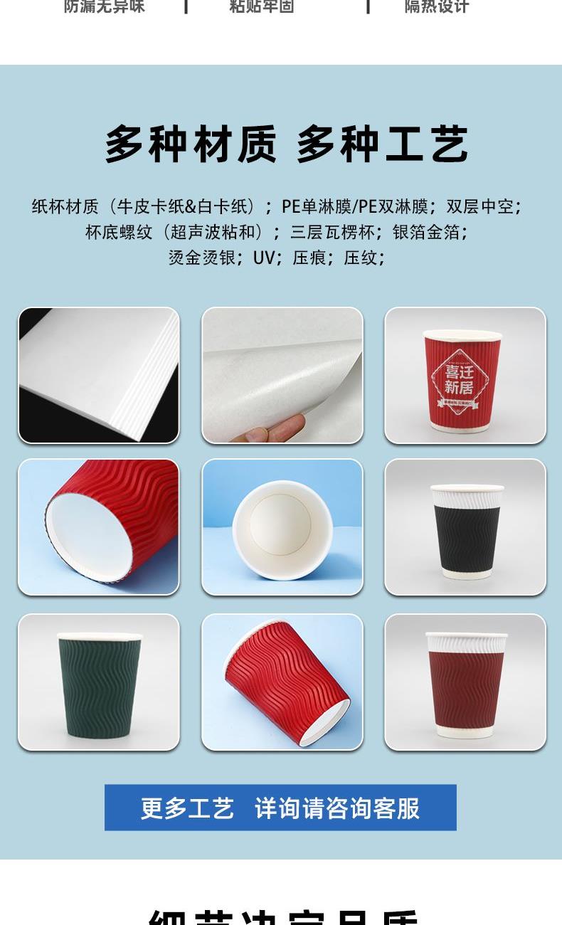 一次性杯子双层加厚热饮咖啡杯瓦楞杯隔热防烫纸杯定制
