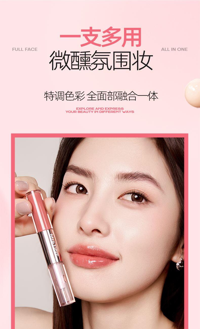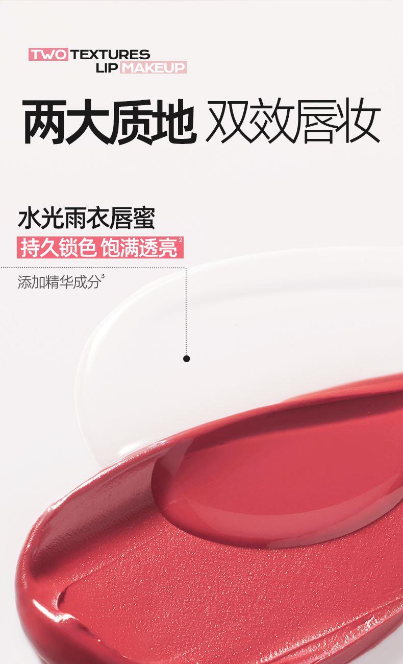 一,一支多用 氛围感妆容 哑光头:偏唇泥质地,顺滑柔焦隐匿唇纹效果好,和底妆不打架能够作为腮红泥和眼影打造全脸妆容 水光头:眼腮唇高光叠加,一键打造水光肌;料体薄亮贴唇贴肤,降低粘度。 二,哑而不干 柔雾妆效 1. 哑而不干,轻纱柔雾妆效 绵柔好延展不拔干不堆积,服帖不移位 打造出柔雾妆效 吸油缓慢,可保证哑而不干的妆效 2.舒适柔软肤感,打造持色嘟嘟唇 空气包裹般的丝滑触感 自带水光雨衣 三,微挥发弹性体 “持妆不易沾杯” 添加精华成分, 饱满透亮,轻盈锁色不黏腻 四,养护安全配方 添加乳木果油+白池花籽油,深层滋润,锁水保湿 添加多重植萃,唇部轻负担 精心调制配方,持妆亦好卸