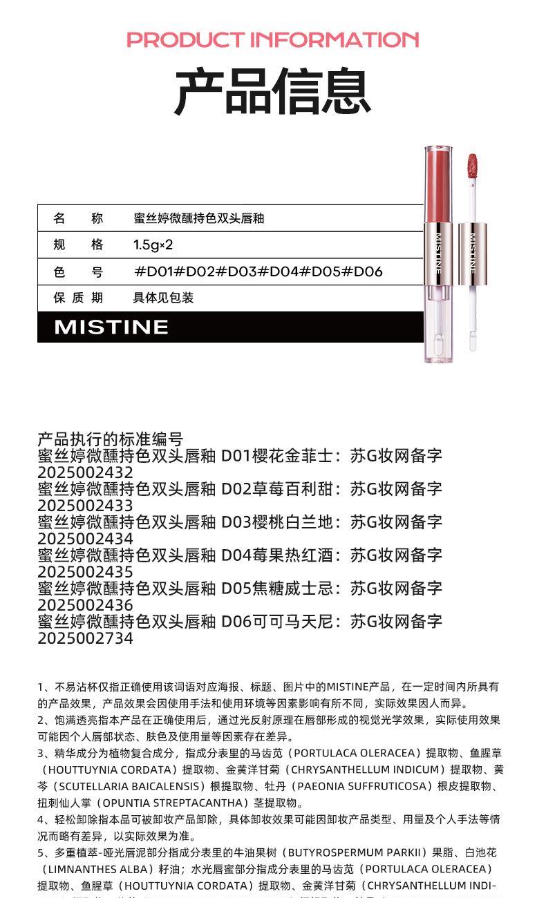 • 蜜丝婷微醺持色双头唇釉D02草莓百利甜