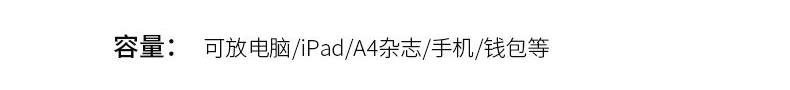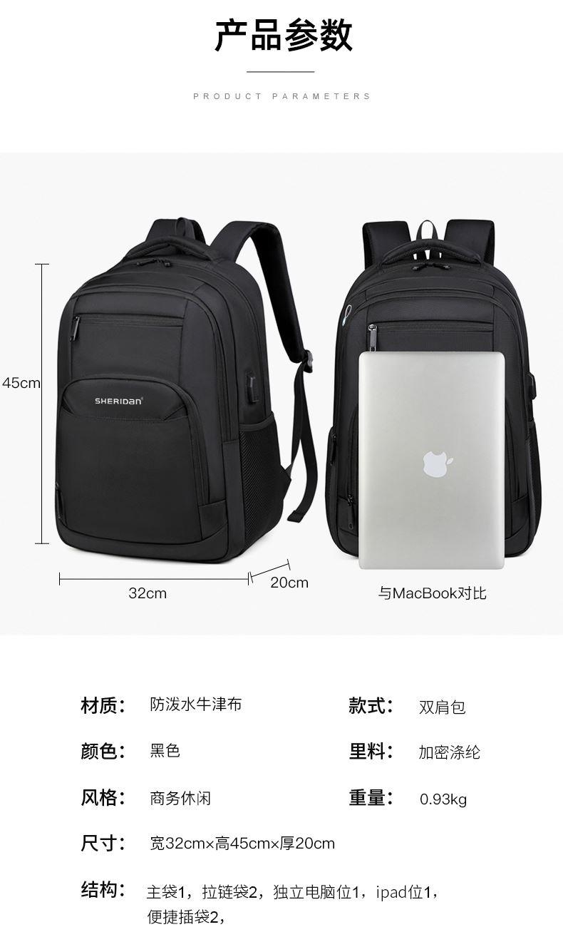 材质:防泼水牛津布 颜色:黑色; 规格:高45*宽32*厚20cm; 重量:0.93kg