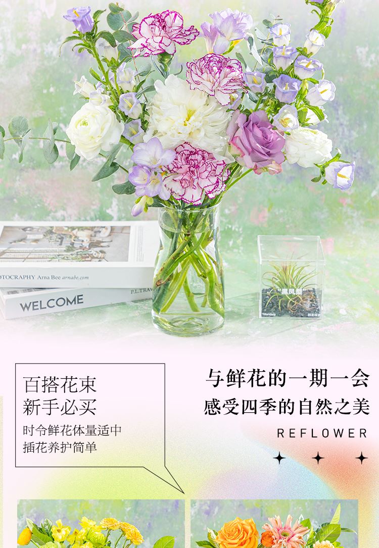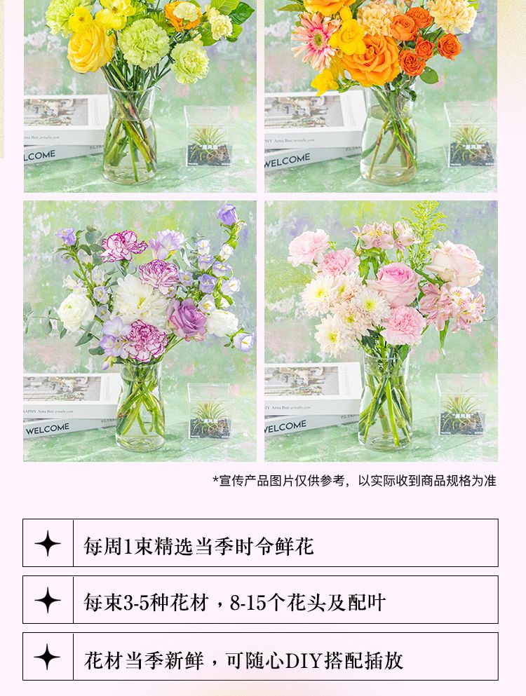 3-5种商务型花材 8-15个花头构成 推荐作为拉新礼品 简答易打理 订购爆款
