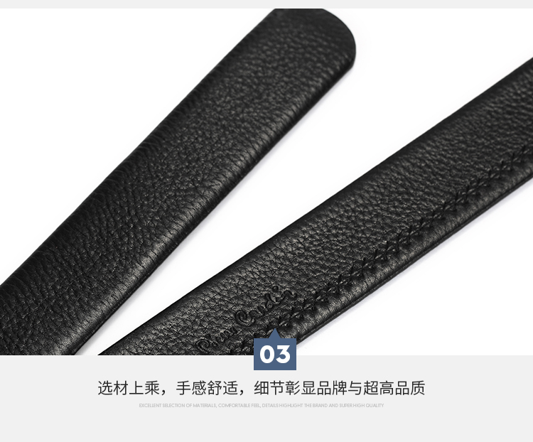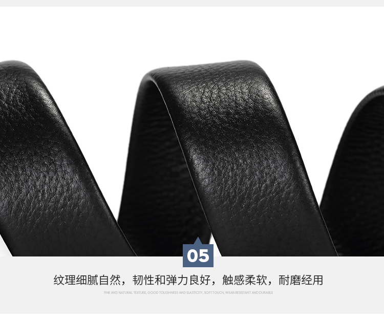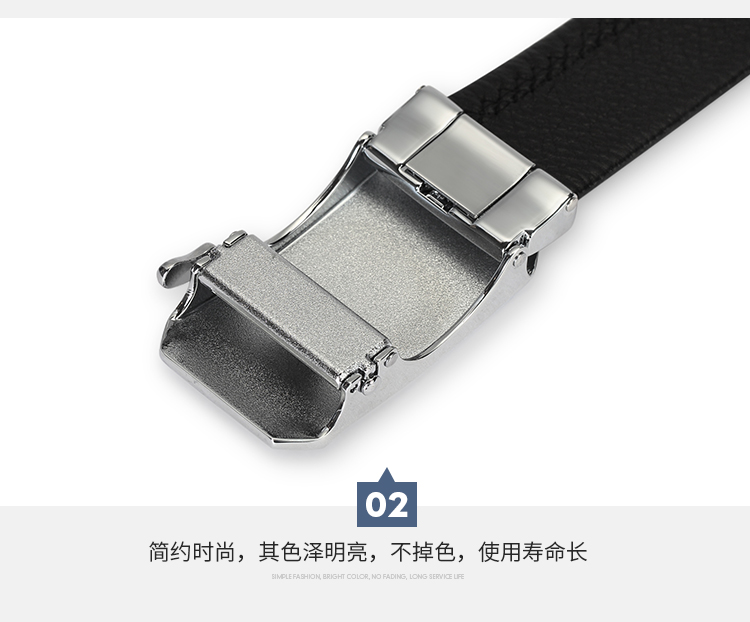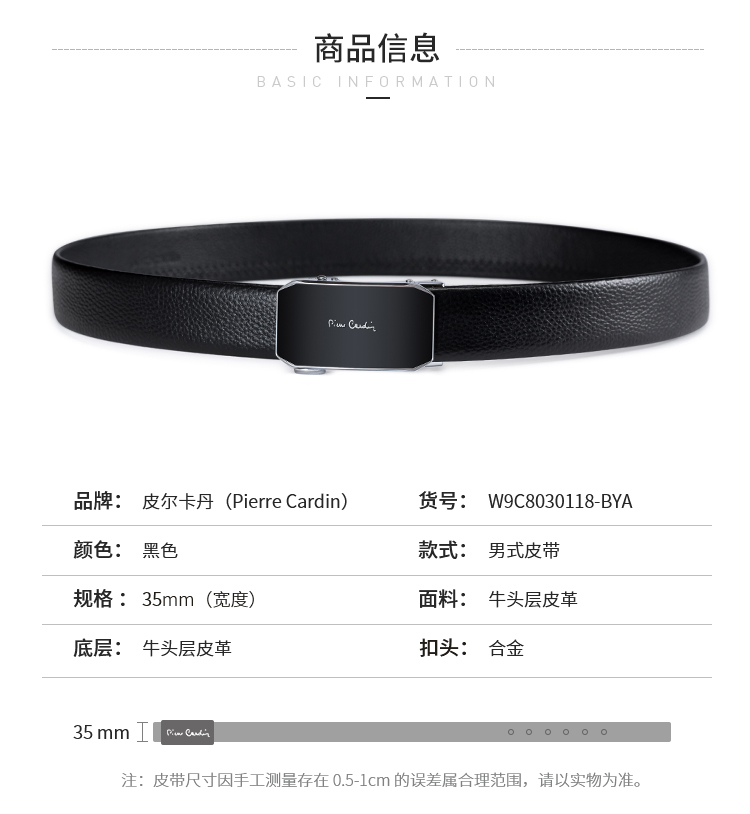 货号:W9C8030118-BYA1 颜色:黑色 款式:男式自动扣皮带 规格:宽35mm 扣头:合金 面料:牛头层皮革 底层:牛头层皮革