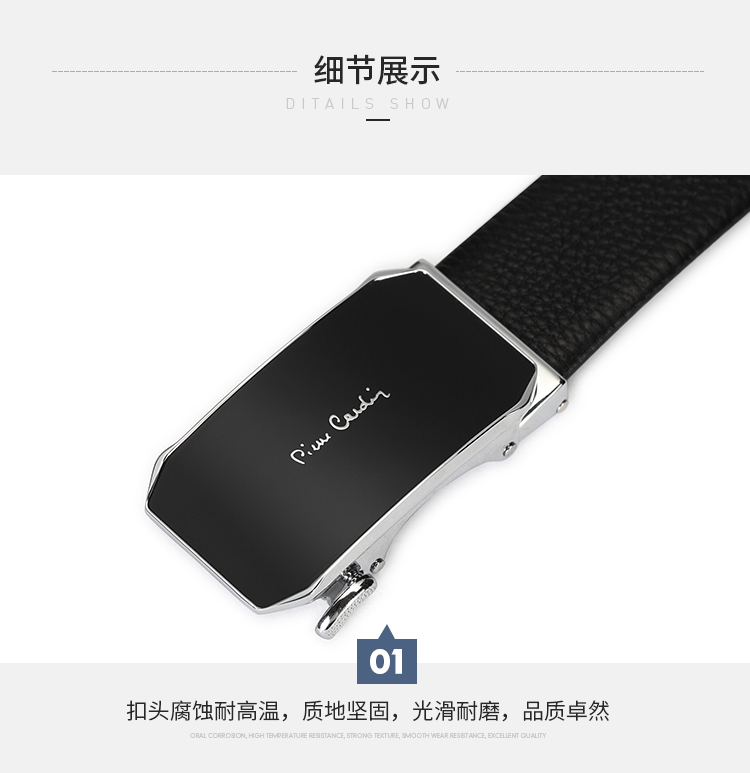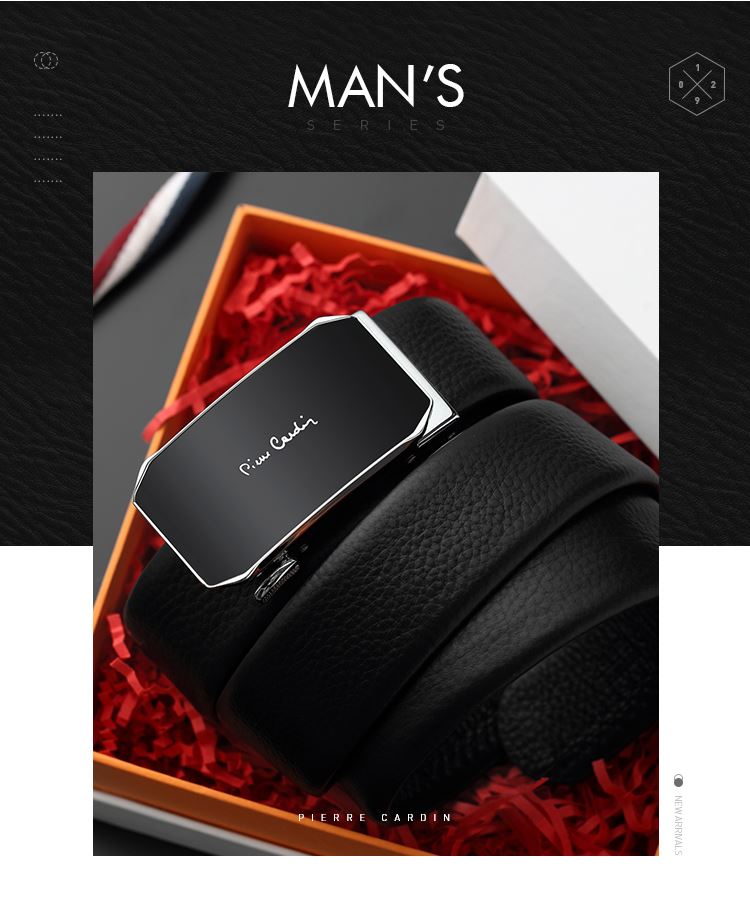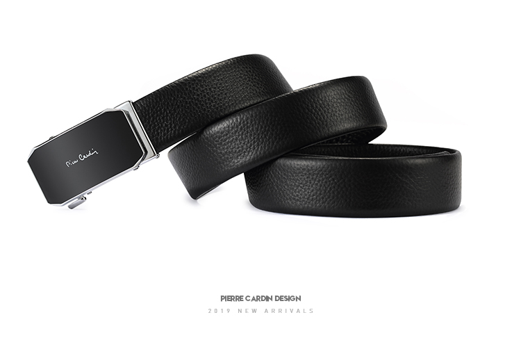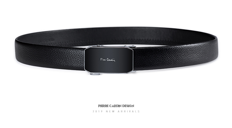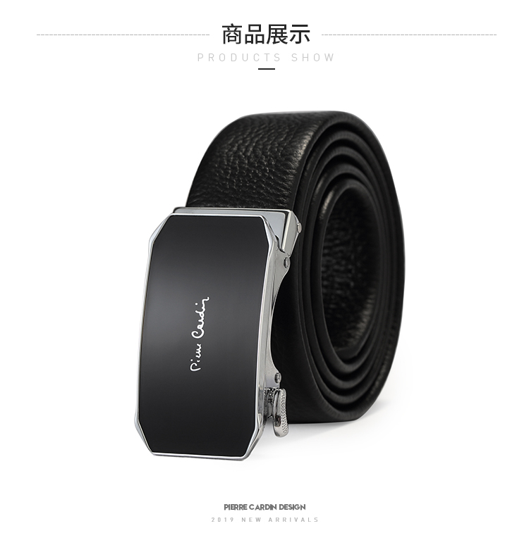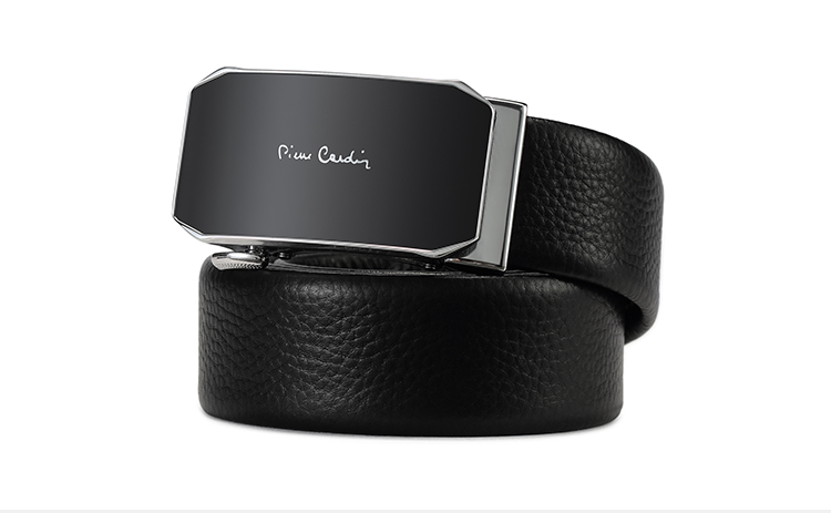 皮尔卡丹黑色男式自动扣皮带