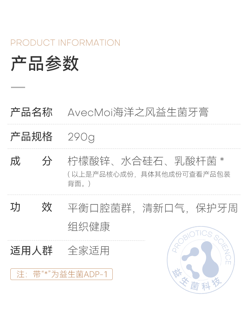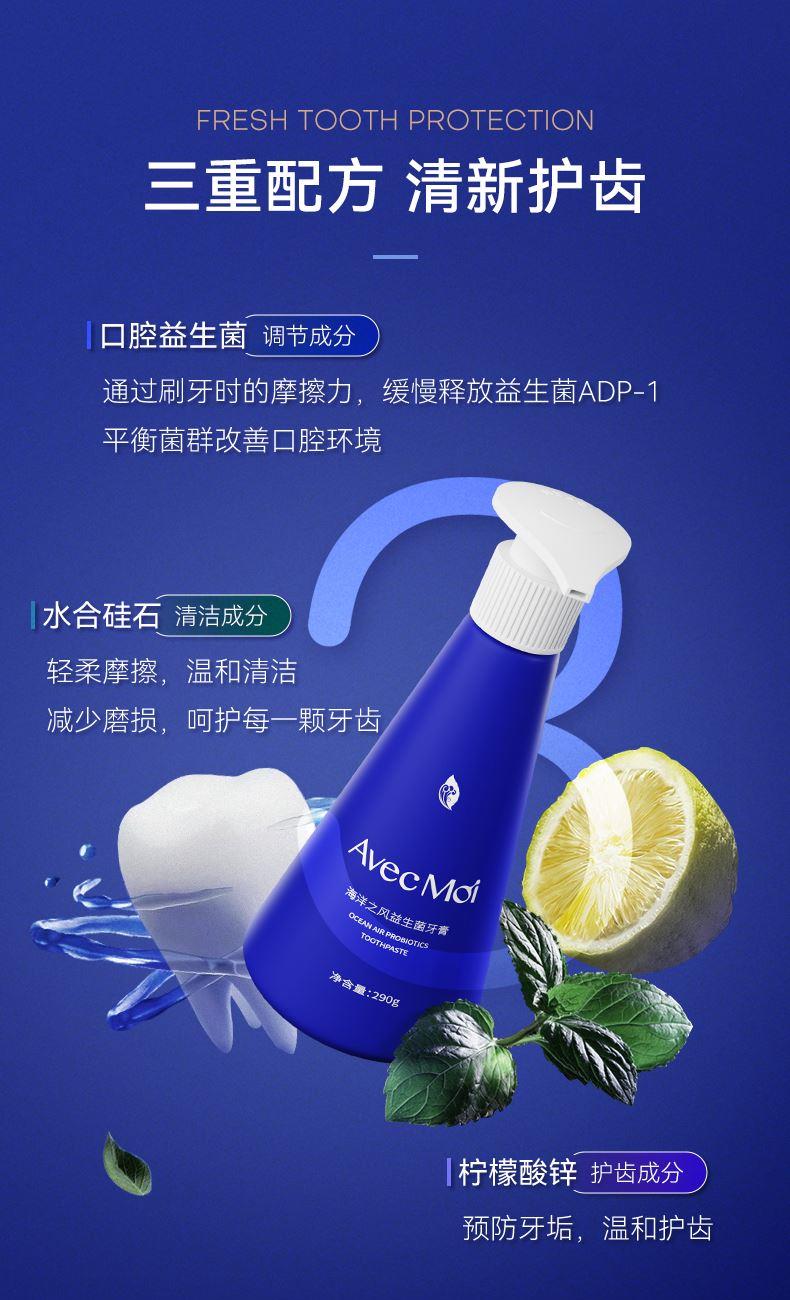 AvecMoi海洋之风益生菌按压牙膏一瓶*290g