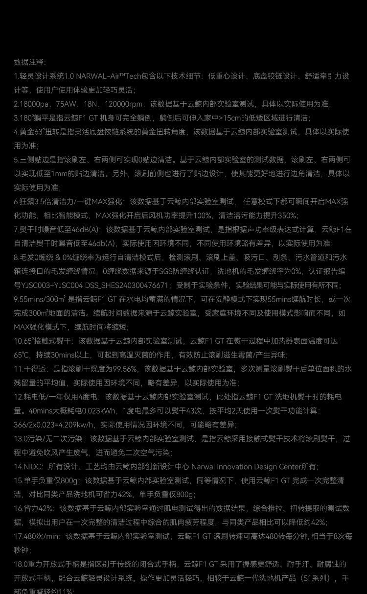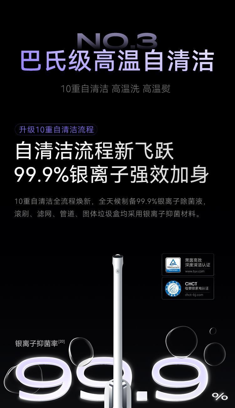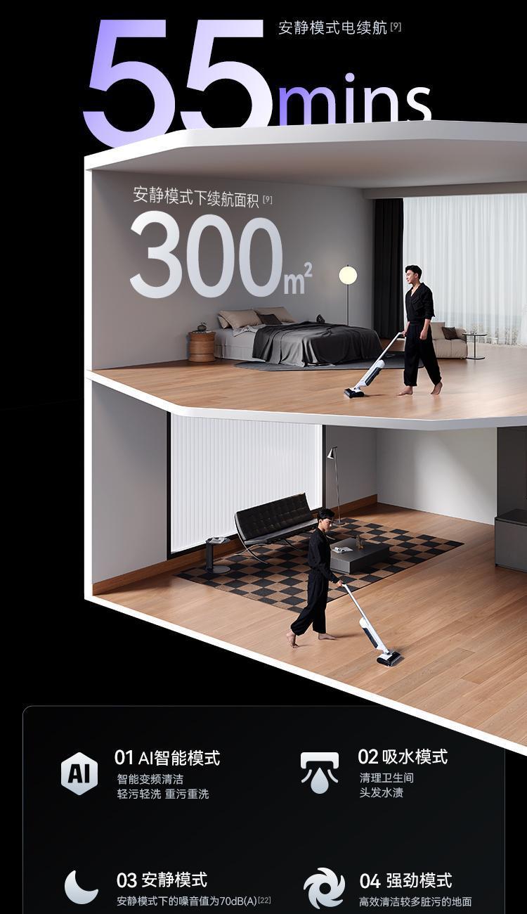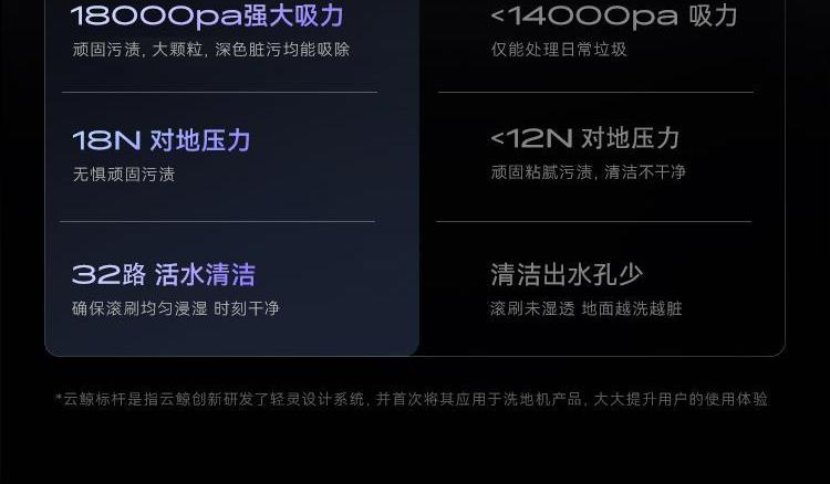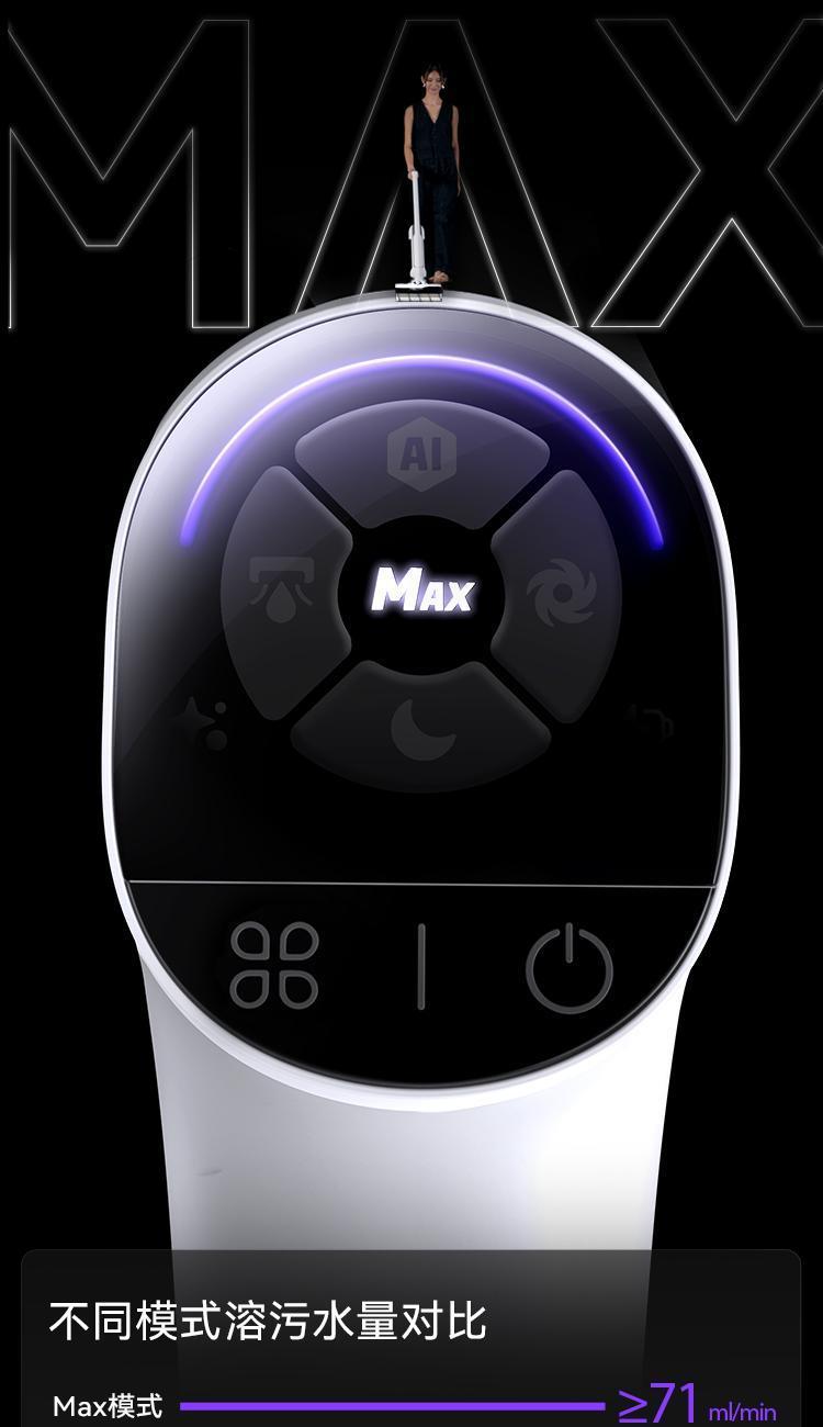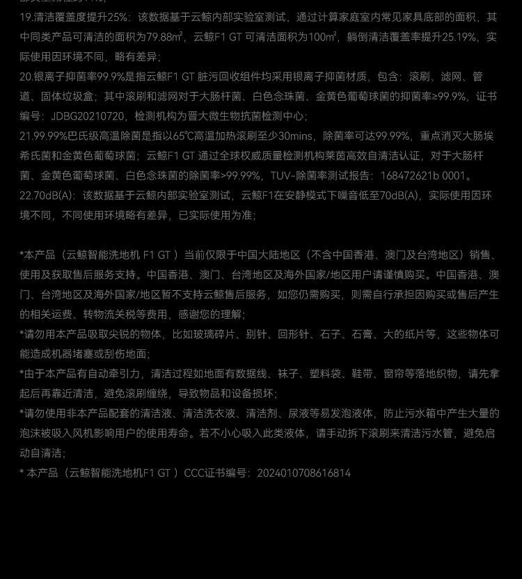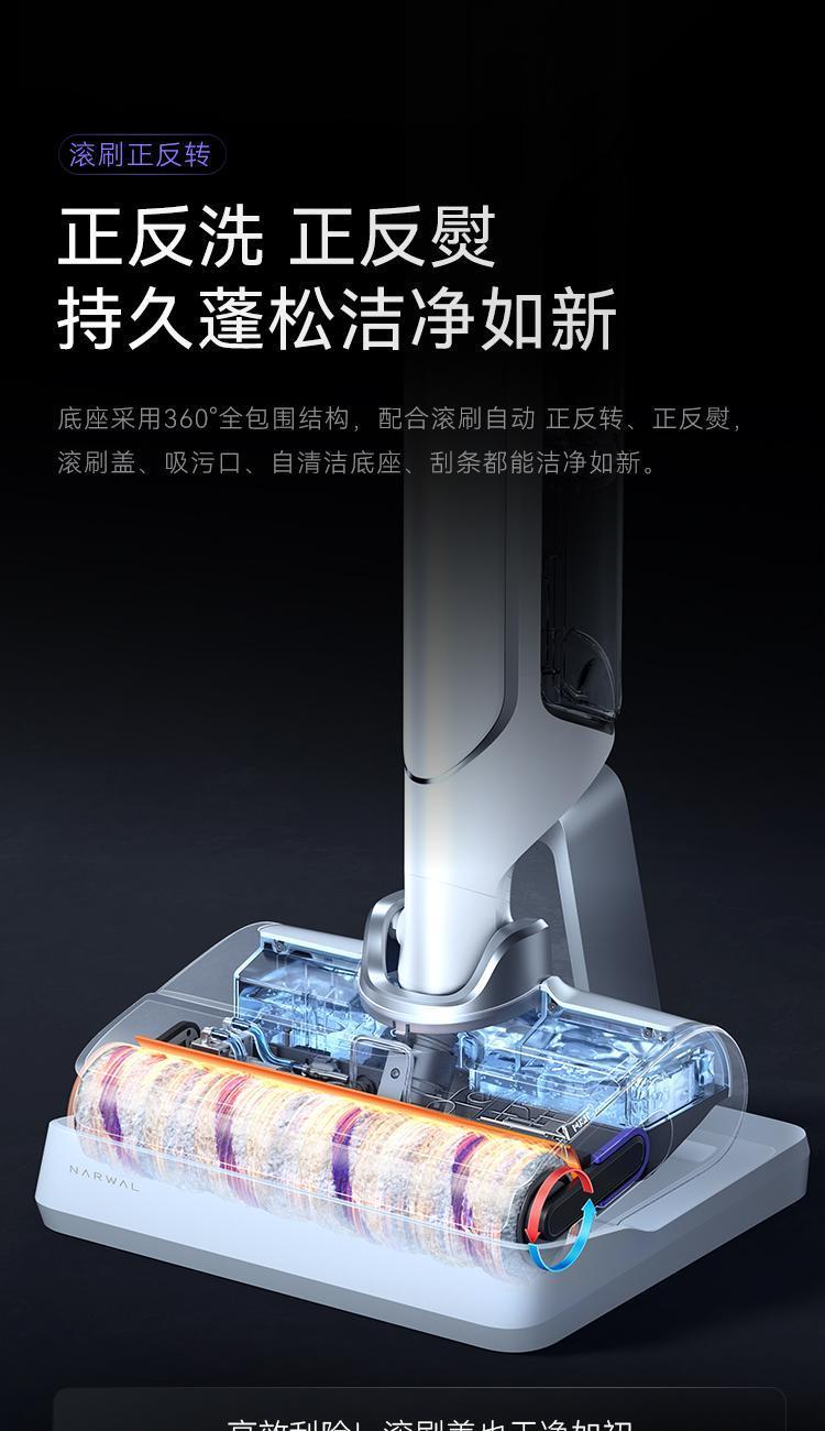 净重 4.7kg 颜色:白色 产品尺寸:洗地机(273*251*1163 mm) 自清洁底座(300*271*225 mm) 包装尺寸:738x332x282mm 吸力18000Pa 180°躺平不扬尘 3 侧贴边 55mins 续航 65℃ 正反熨干低至 40mins 99.9% 银离子 噪音46dB(A)