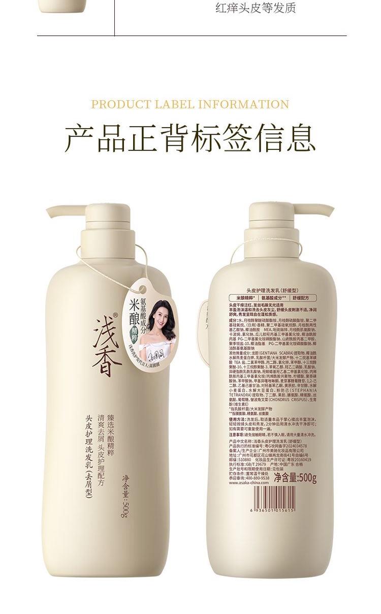 浅香米酿头皮护理洗发乳(去屑型)-净爽500g