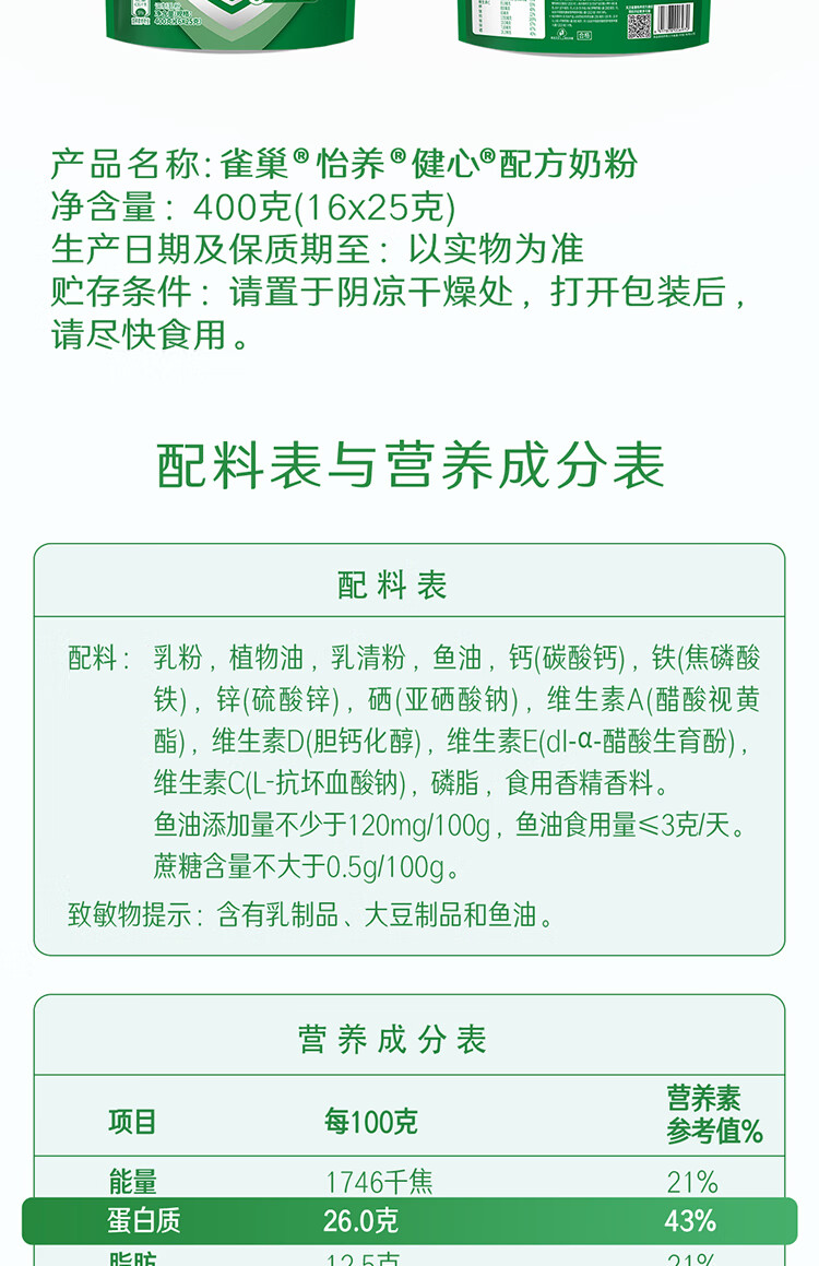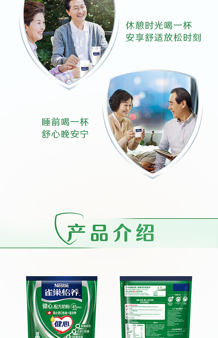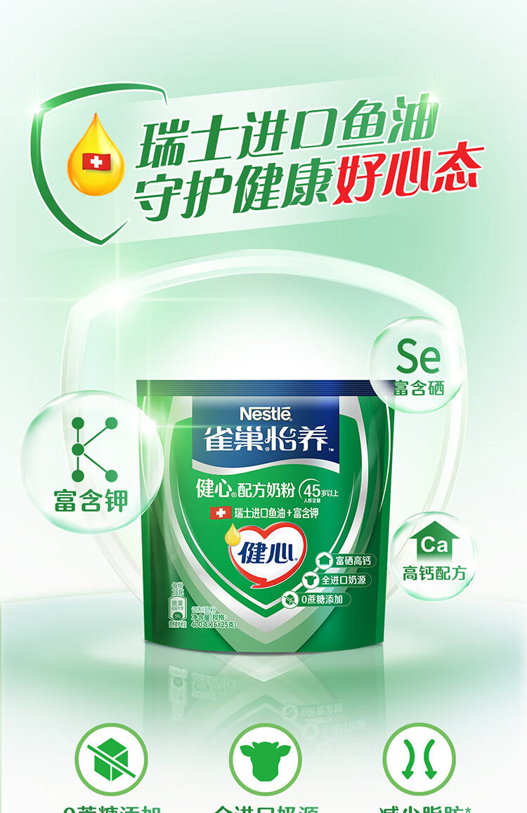 雀巢(Nestle)怡养健心鱼油中老年奶粉高钙400g袋装