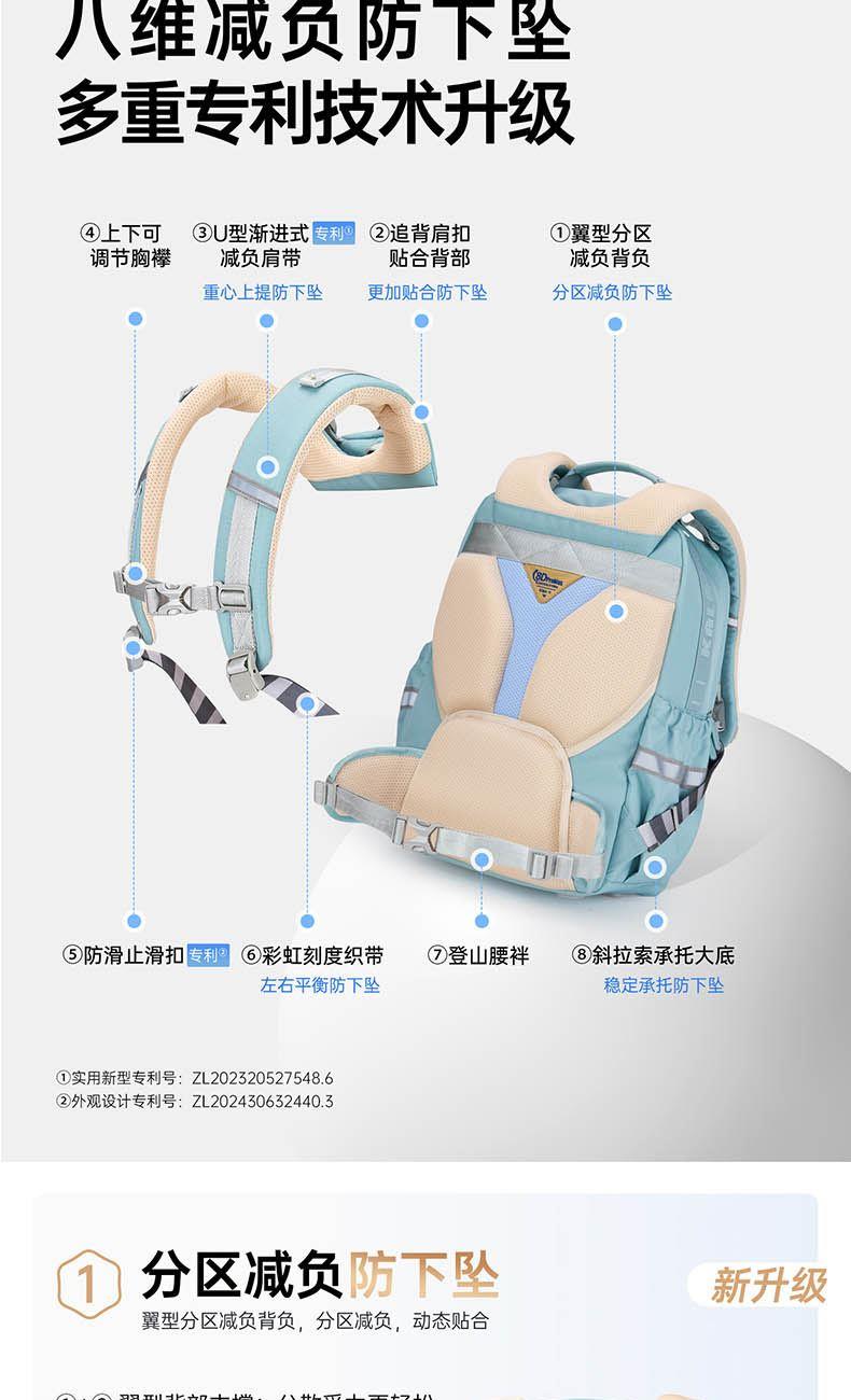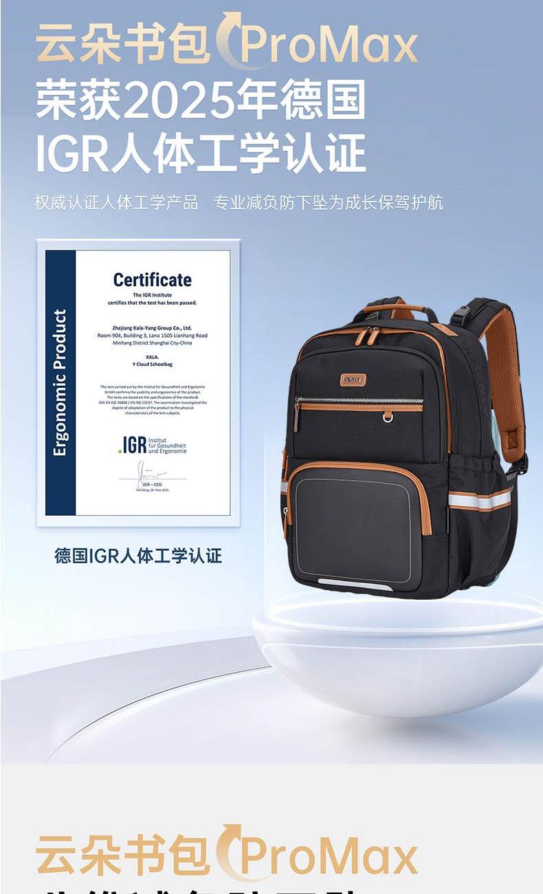 卡拉羊御风系列防下坠减负云朵书包中学生CX5162新黑金