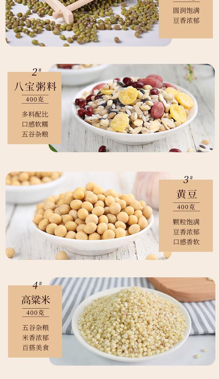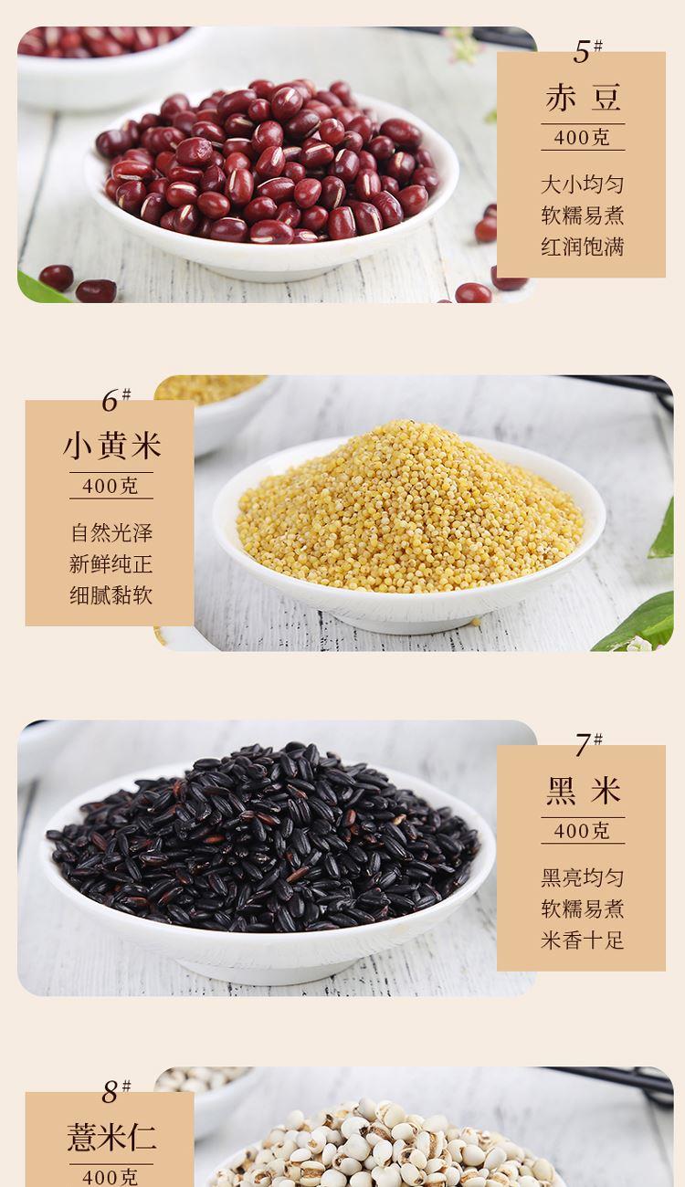 黄小米400克 八宝粥料400克 赤豆400克 薏仁米400克 绿豆400克 黄豆400克 黑米400克 高粱米400克 五谷丰登礼盒(红色)