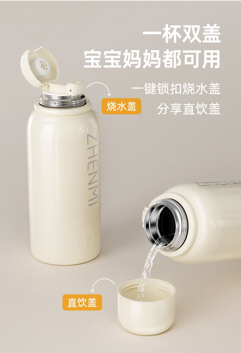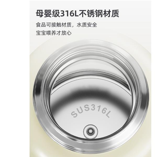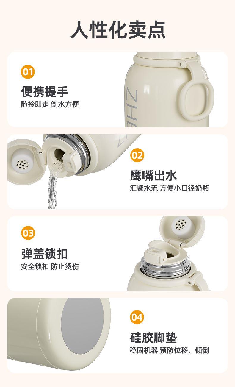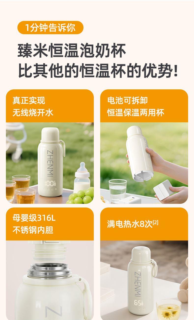 37℃、40℃、45℃、50℃、55℃、65℃、100℃ 7档调温; 10400mA超长续航,充一次电可烧15次水; 满电状态下,可烧开一壶水,可以烧开100度; 母婴级316L内胆安全材质; 外置NTC实时控温,误差≤1%; 防水级IPX6,整机可水洗; 外界充电,支持快充; 电池独立芯片含过充、过放保护,超温保护,3C认证安全耐用; 5重测试:耐压、跌落、高低温、温升、非正常测试; 电池组件750°C超高耐温,专用防火材料,使用更安全; 创新换电池技术; 双重防干烧保护;