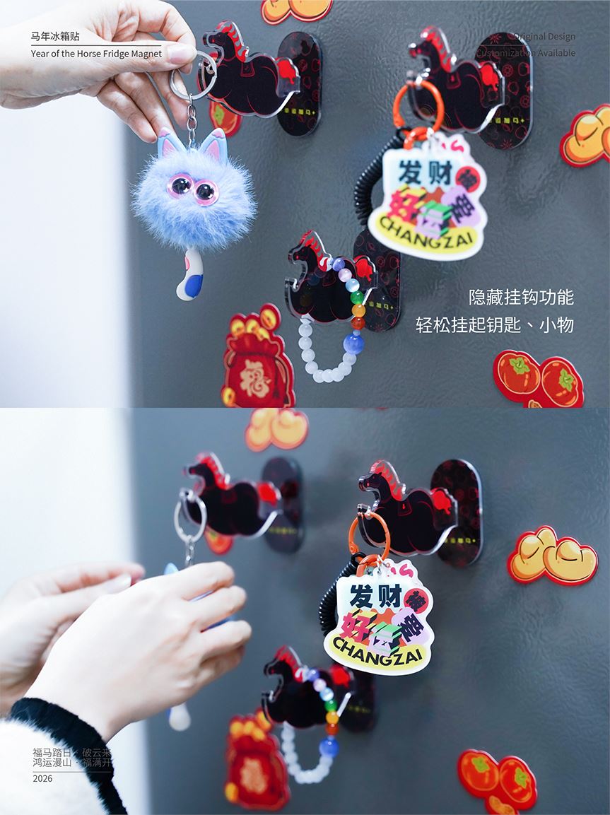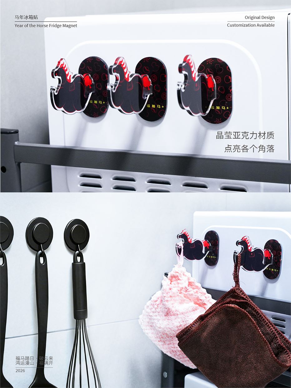 功能:即可作为冰箱贴,还可作为挂钩使用,方便悬挂钥匙、围巾等小物件 材质:采用环保树脂亚克力,无毒无害,色彩鲜艳,不易褪色