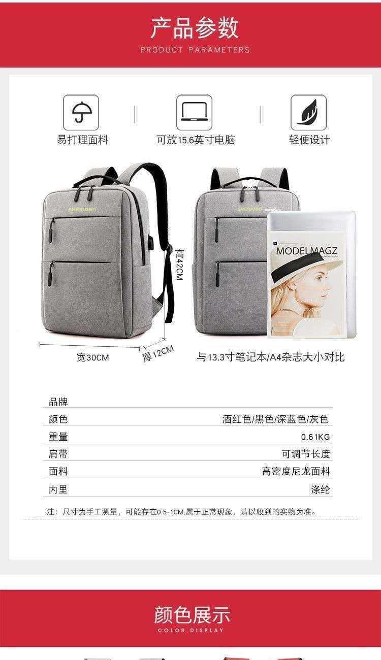 材质:高密度尼龙 颜色:酒红、黑色、深蓝色、灰色; 规格:高42*宽30*厚12cm; 重量:0.61kg
