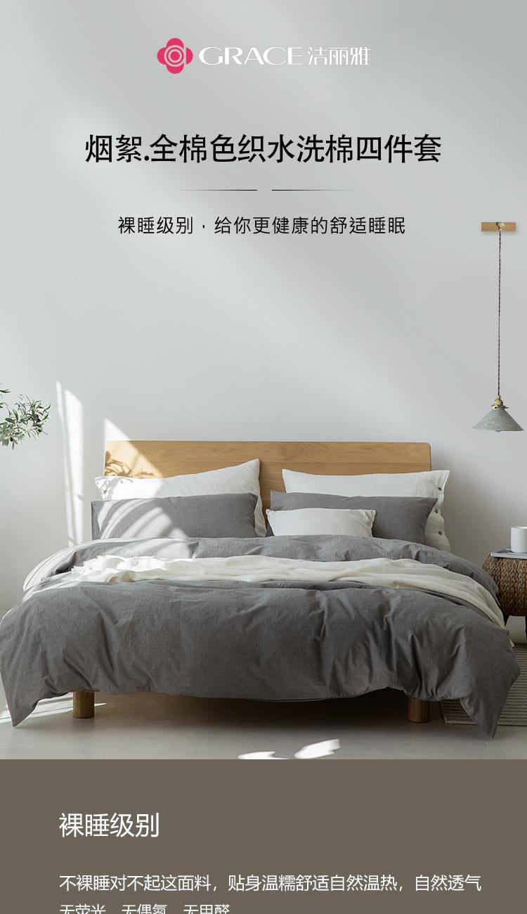 洁丽雅(Grace)烟絮.全棉色织水洗棉四件套