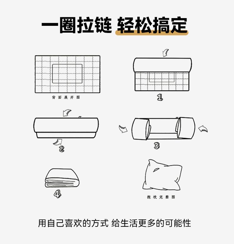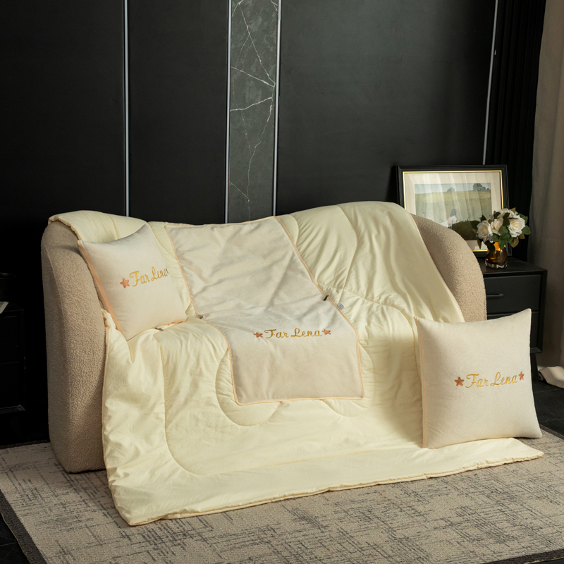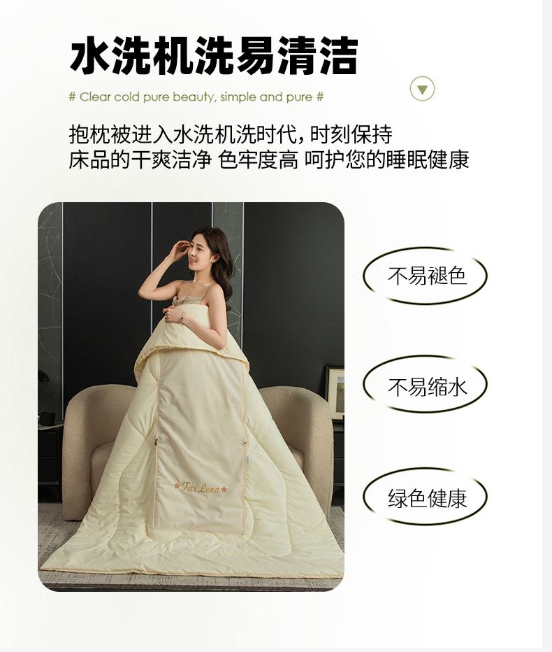 抱枕尺寸:40*40cm*1 被子尺寸:105*145cm 面料:雪尼尔/磨毛 数量:一只 产品包装:精美手提袋 产品特点: 1.雪尼尔面料自带肌理感,软糯透气舒适,四季适用。 2.雪尼尔面料自带细腻麻感肌理,磨毛则添一份软糯亲肤,双重面料加持,触感湿润细腻又兼具韧性,上手便能感受到藏在面料里的质感。