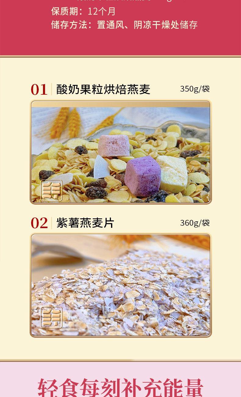 紫薯燕麦片360g*2盒/袋 酸奶果粒烘焙燕麦350g*2袋 1420g