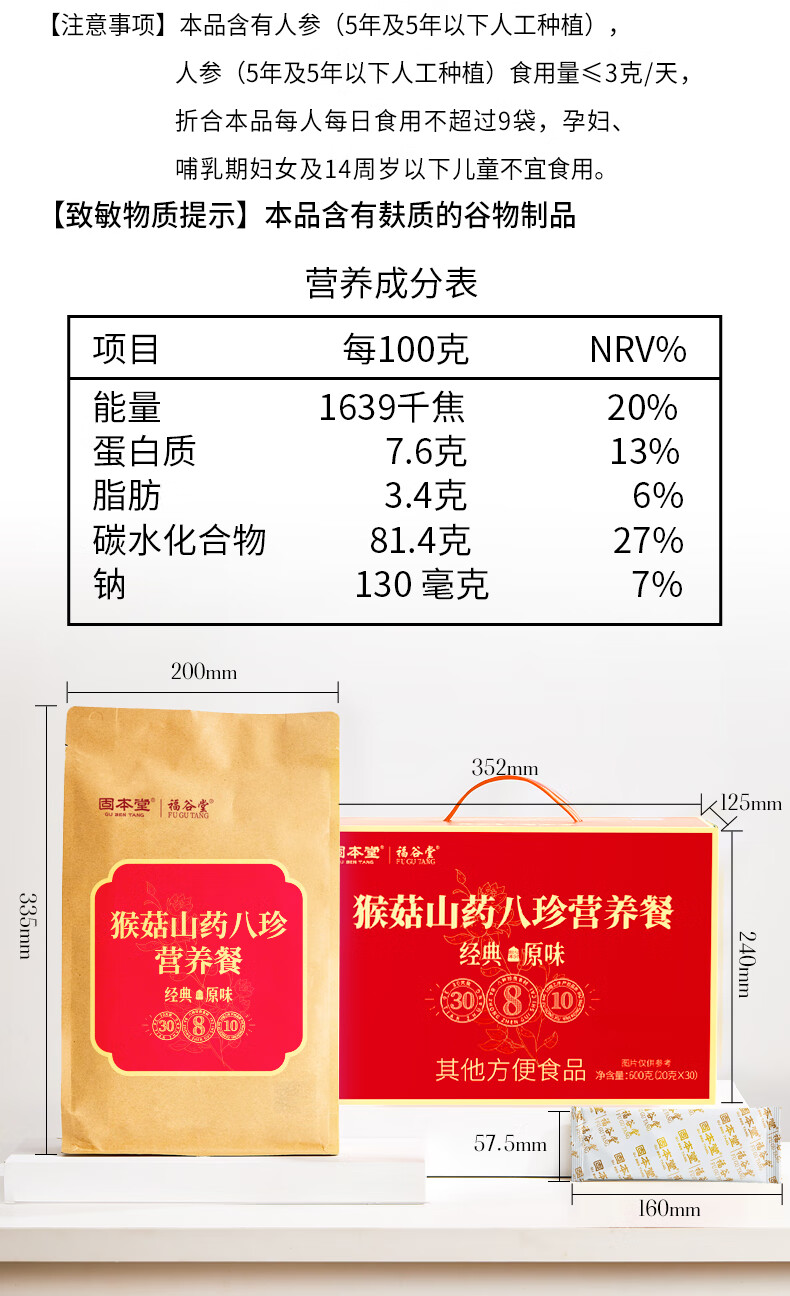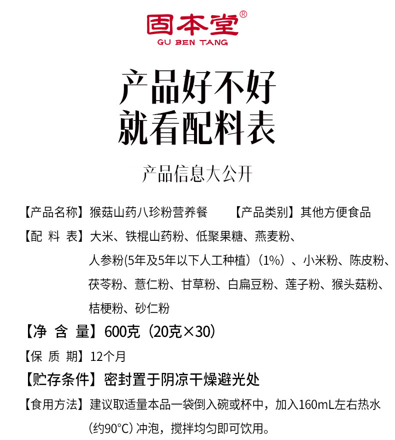 固本堂 固本堂猴菇山药营养餐(经典原味)600g礼盒装 6973700386436 600g 0.98