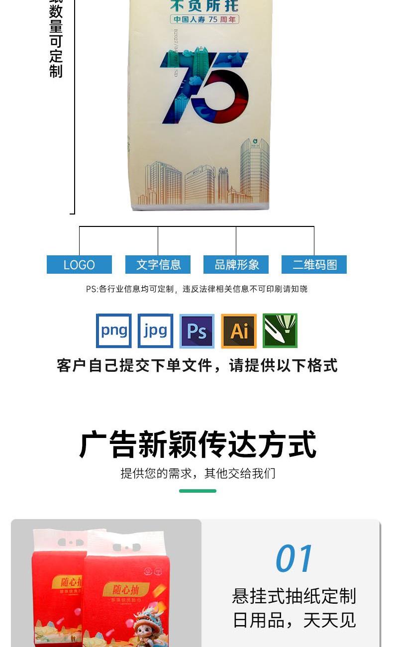 悬挂式抽纸定制印logo定做底部抽纸巾挂式抽纸订制