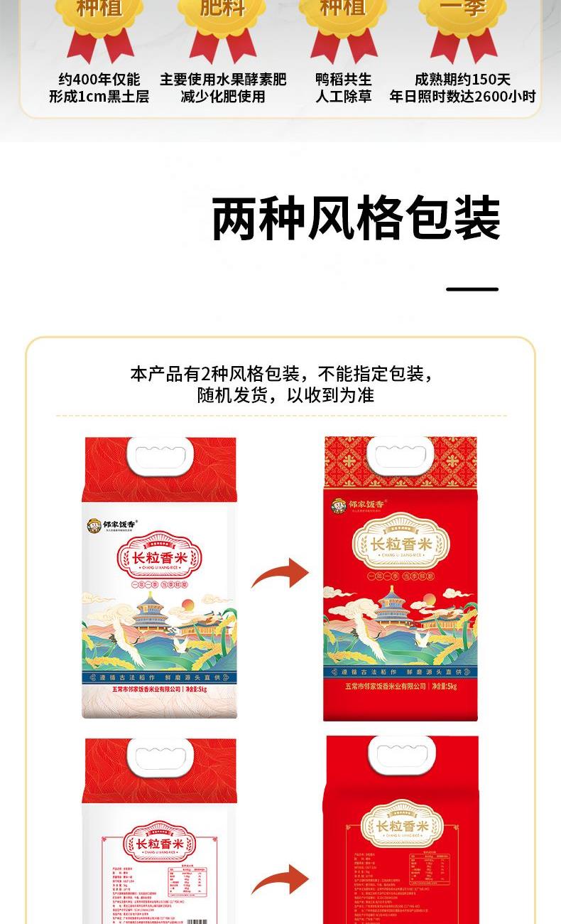 邻家饭香云鹤天章东北长粒香大米5kg/袋SZ162