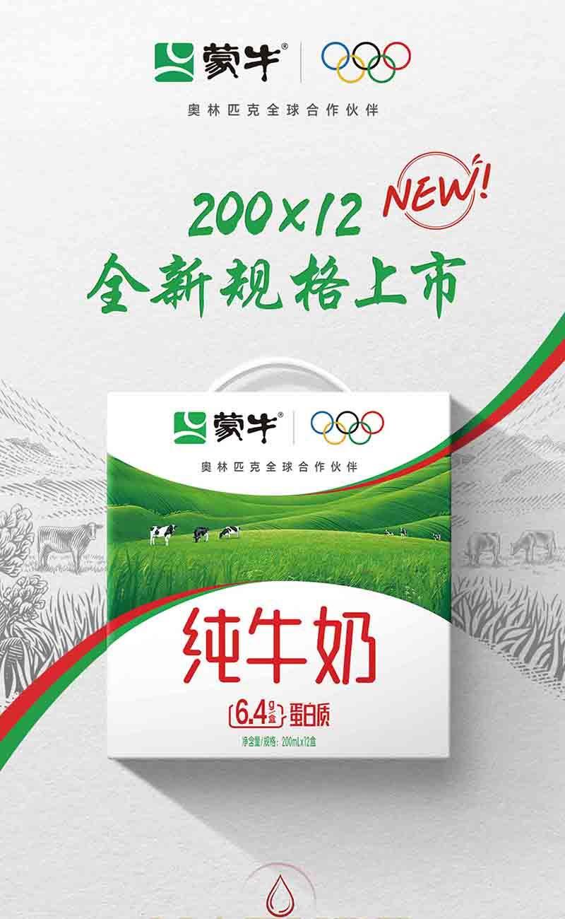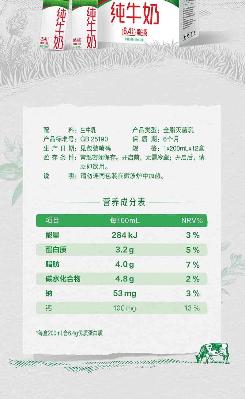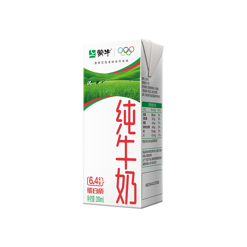 蒙牛纯牛奶全脂利乐苗条装200ml*12包