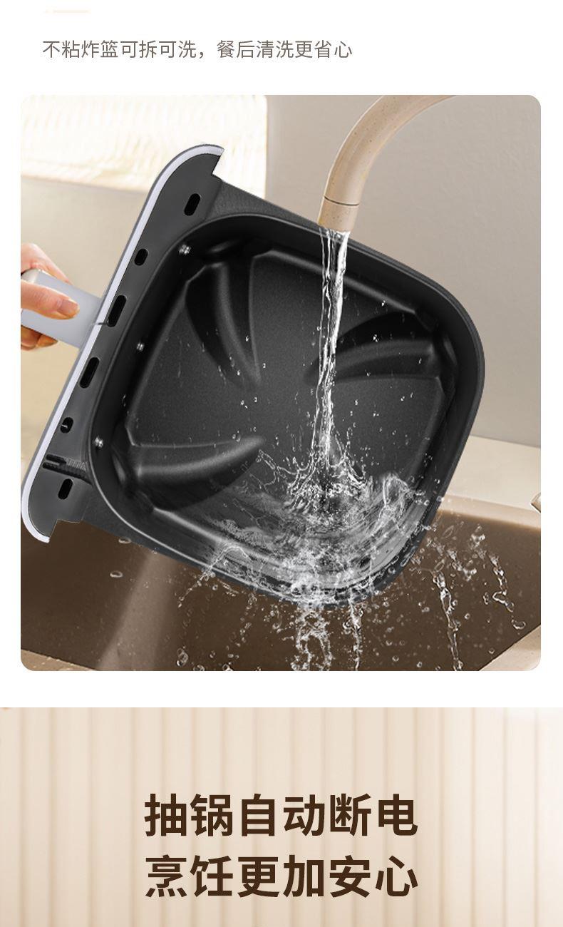 灵动小巧,家居新颜 不沾易清洗 抽锅断电,烹饪更安心 额定功率:1400W 毛重:3.6KG 产品尺寸:240*330*295mm 容量:4L