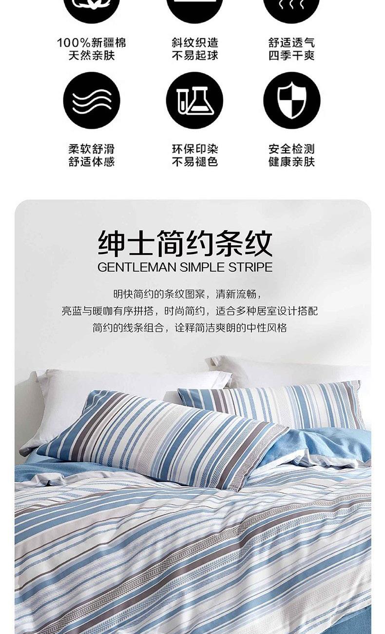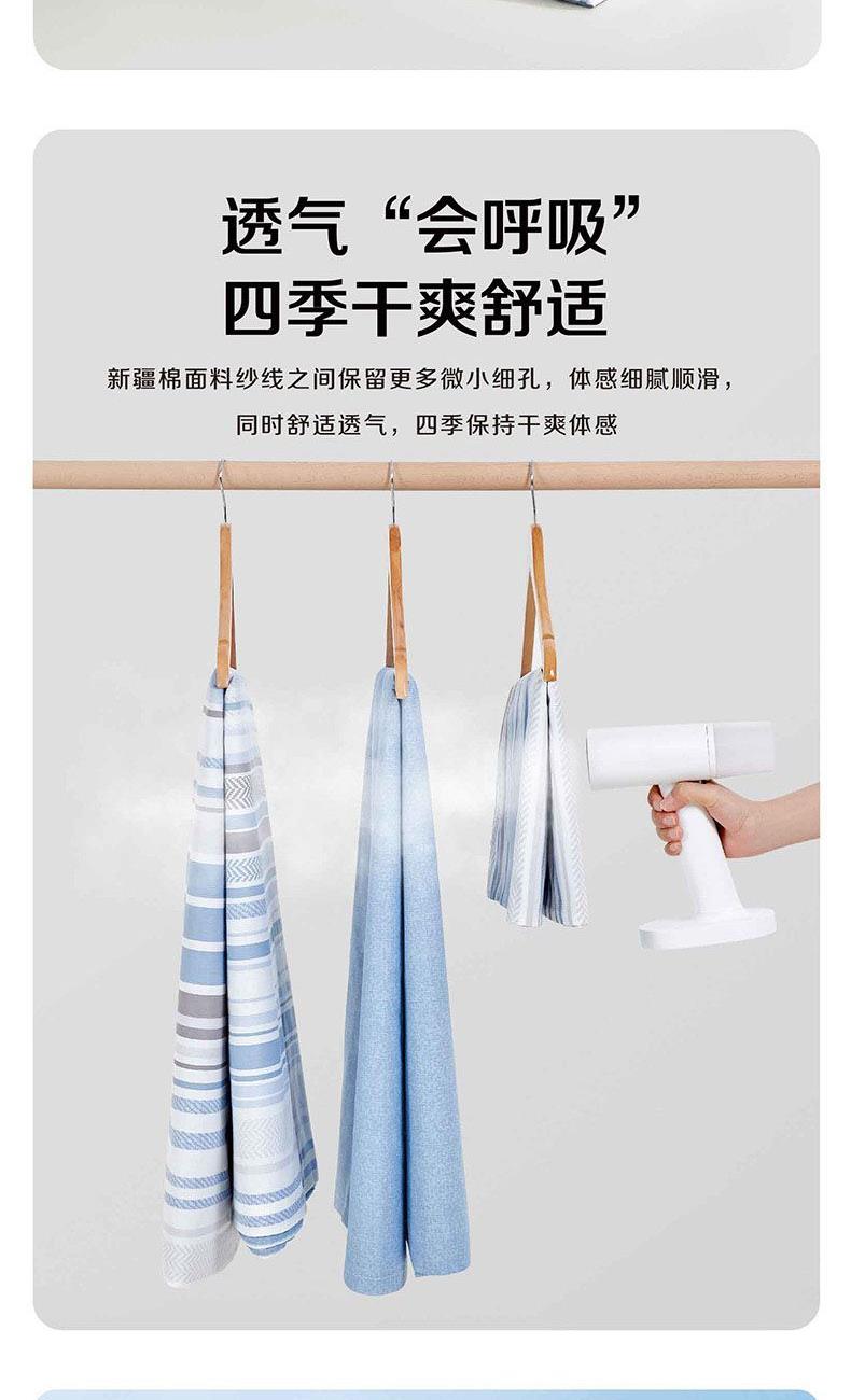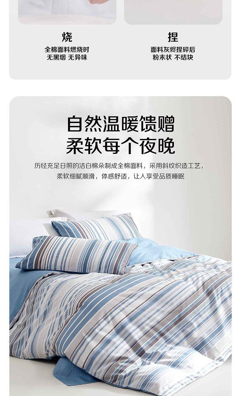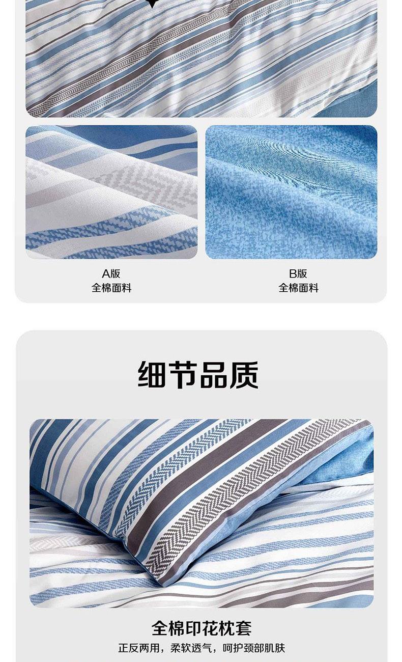 规 格 :200*230cm 被 套 :200*230(cm)*1 被 单 :230*241(cm)*1 枕 套 :48*74(cm)*2 面 料 :棉 包 装 :礼盒包装 海风拂面,蓝天白云作伴,此刻的心情仿佛与大海融为一体,波澜壮阔。脚下细沙柔软,留下一串串足迹,指向美好的远方。在海边游玩,感受大自然的无尽魅力,尽享悠长假日