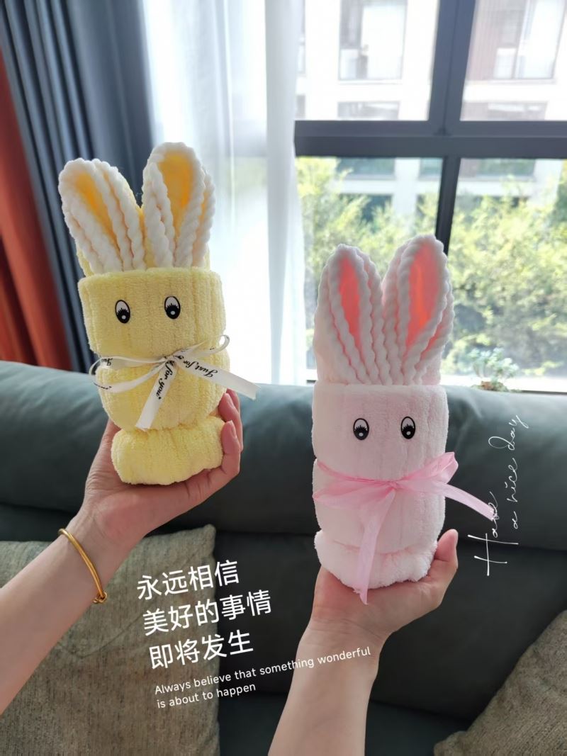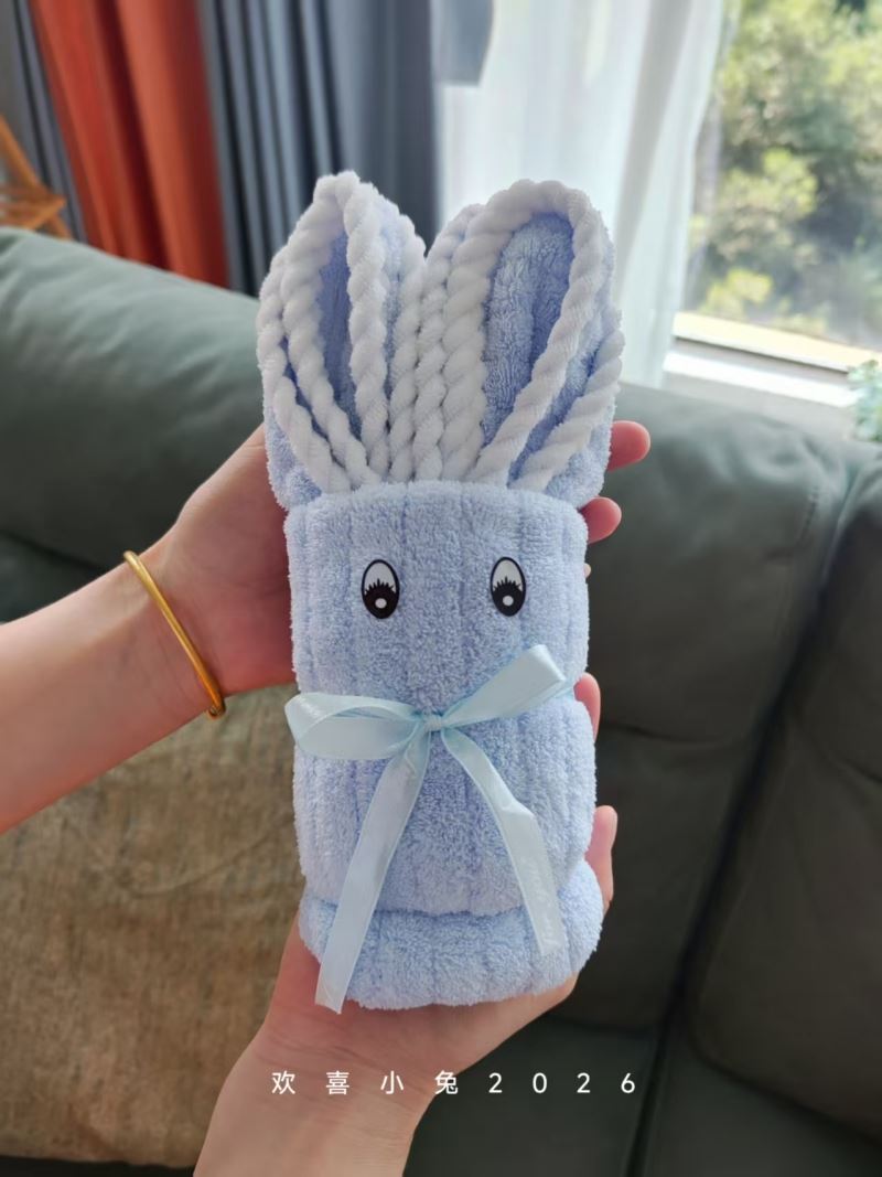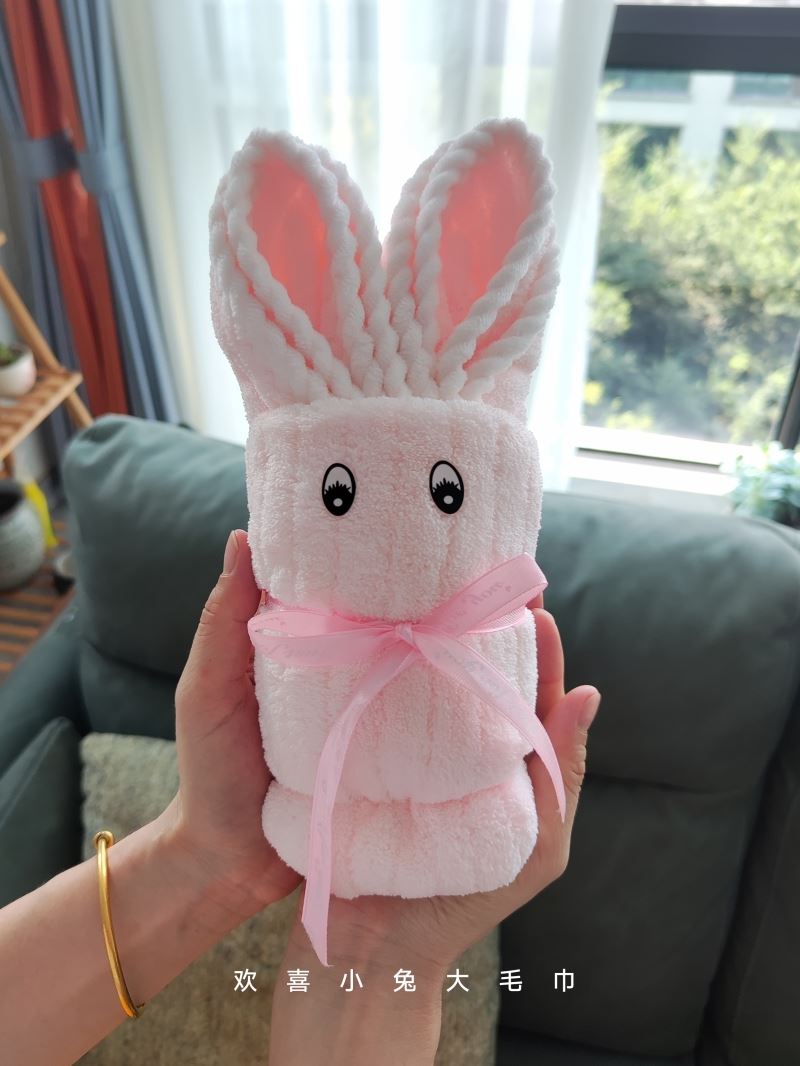 型号: HXXT-02 成份: 85%聚酯纤维 15%锦纶(包边布除外) 标准: GB/T22864-2020 类别: GB18401-2010 B类 规格: 35*75CM 颜色: 粉色、蓝色、橘色 平方克重: 300克/平方 外盒:25×14×7cm 升级款小兔 波浪纹面料 高平方克重 精美包边工艺