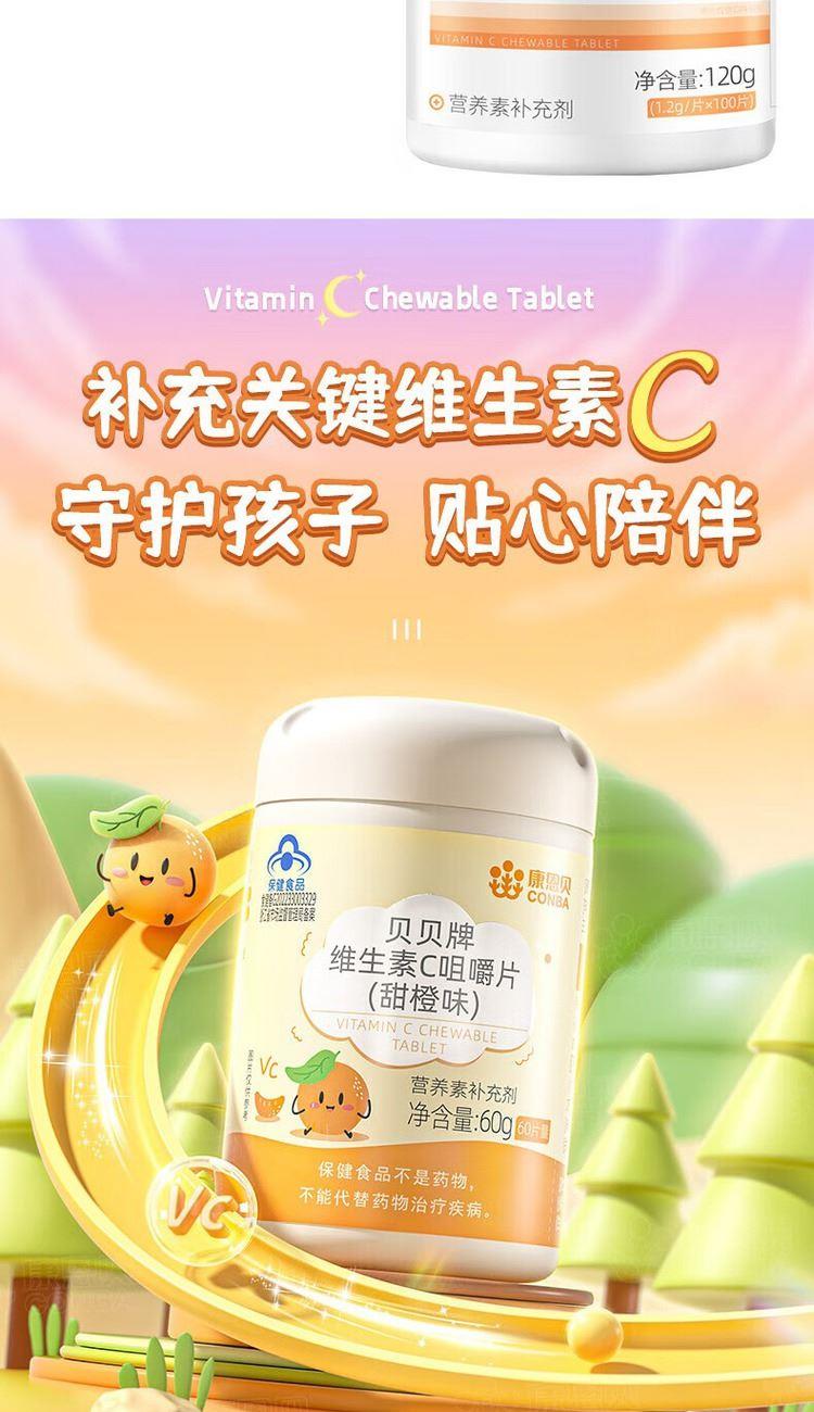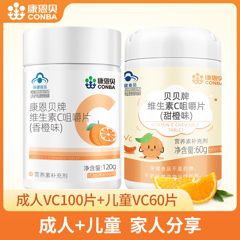成人VC100片+儿童VC60片 香橙味+甜橙味 高含量 每片VC含量228mg 三种口味 营养相伴 酸甜自在 随心选择
