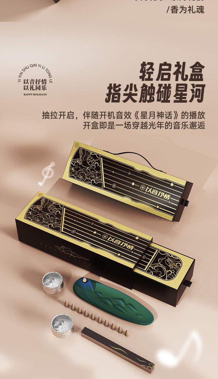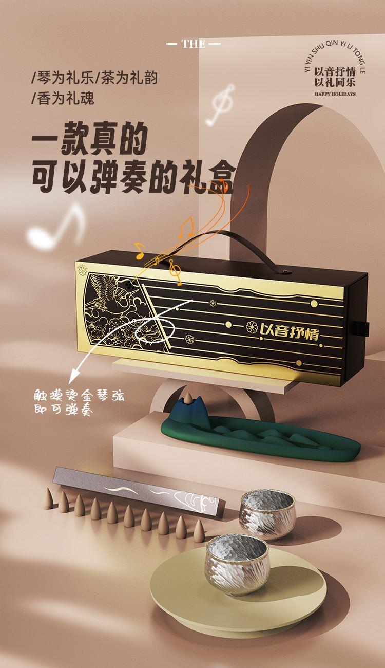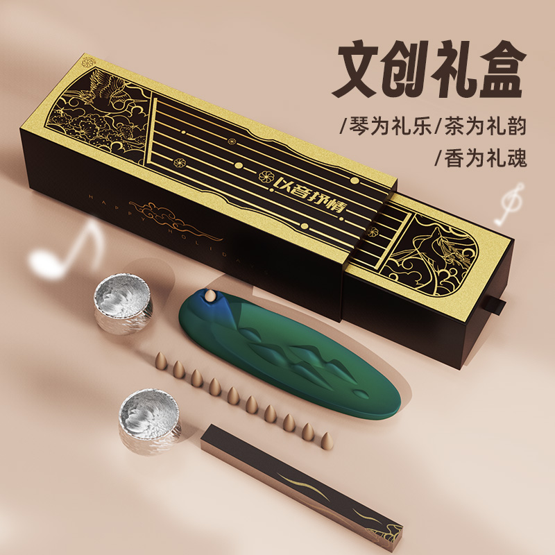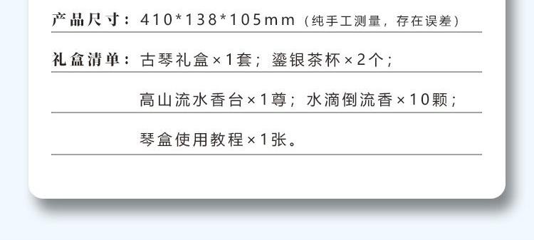 七弦电子古琴X1个 高山流水香台X1尊 925高纯度双面鎏银茶杯X2个 水滴倒流香X10颗 古琴简易教程X1张