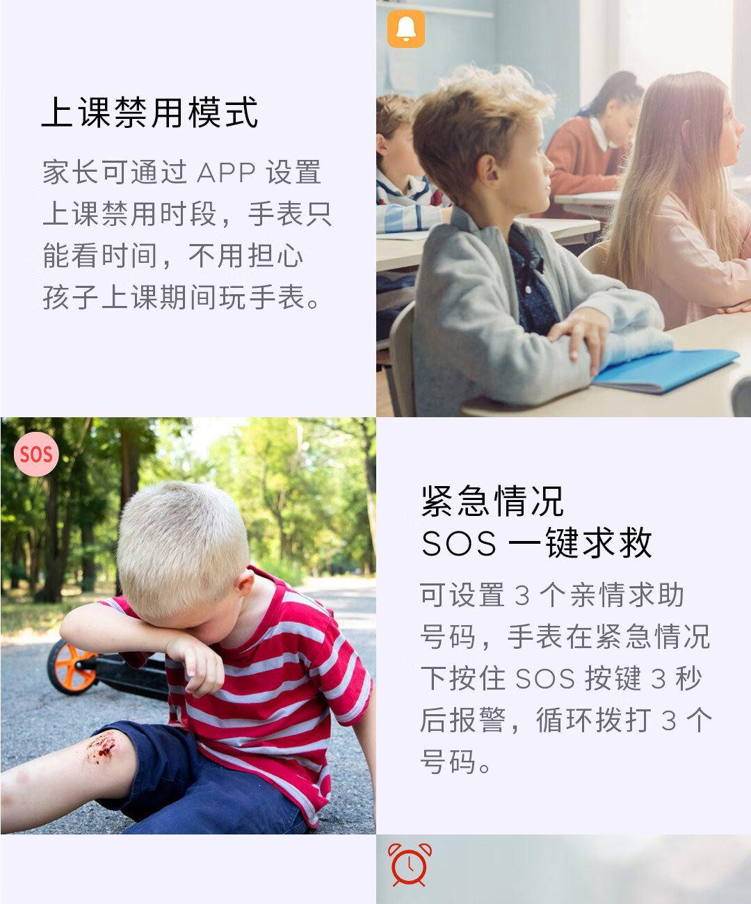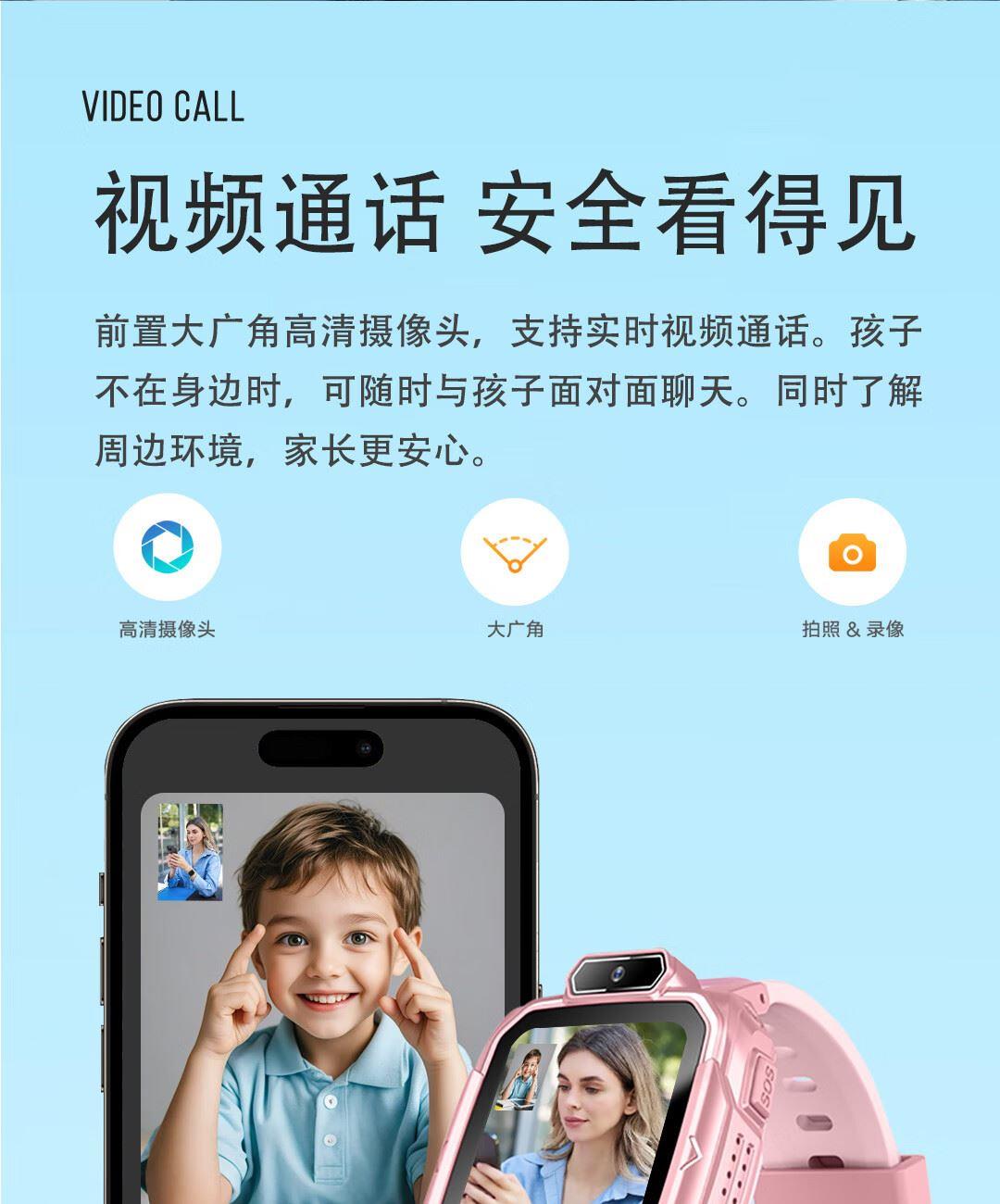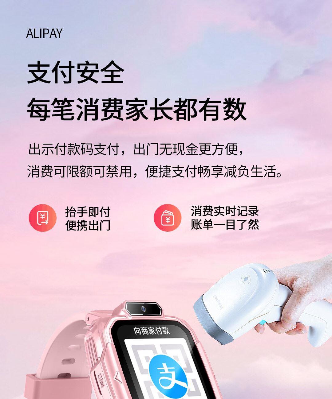 实时定位,当日历史轨迹,双向通话,语音微聊,闹钟设置,上课禁用,安全守护,生活防水,支付宝零钱包,视频通话,AI智能机器人,远程关机,拒接陌生电话,禁用拨号盘等功能