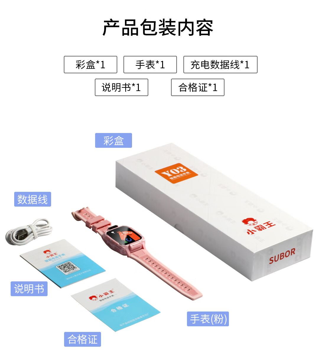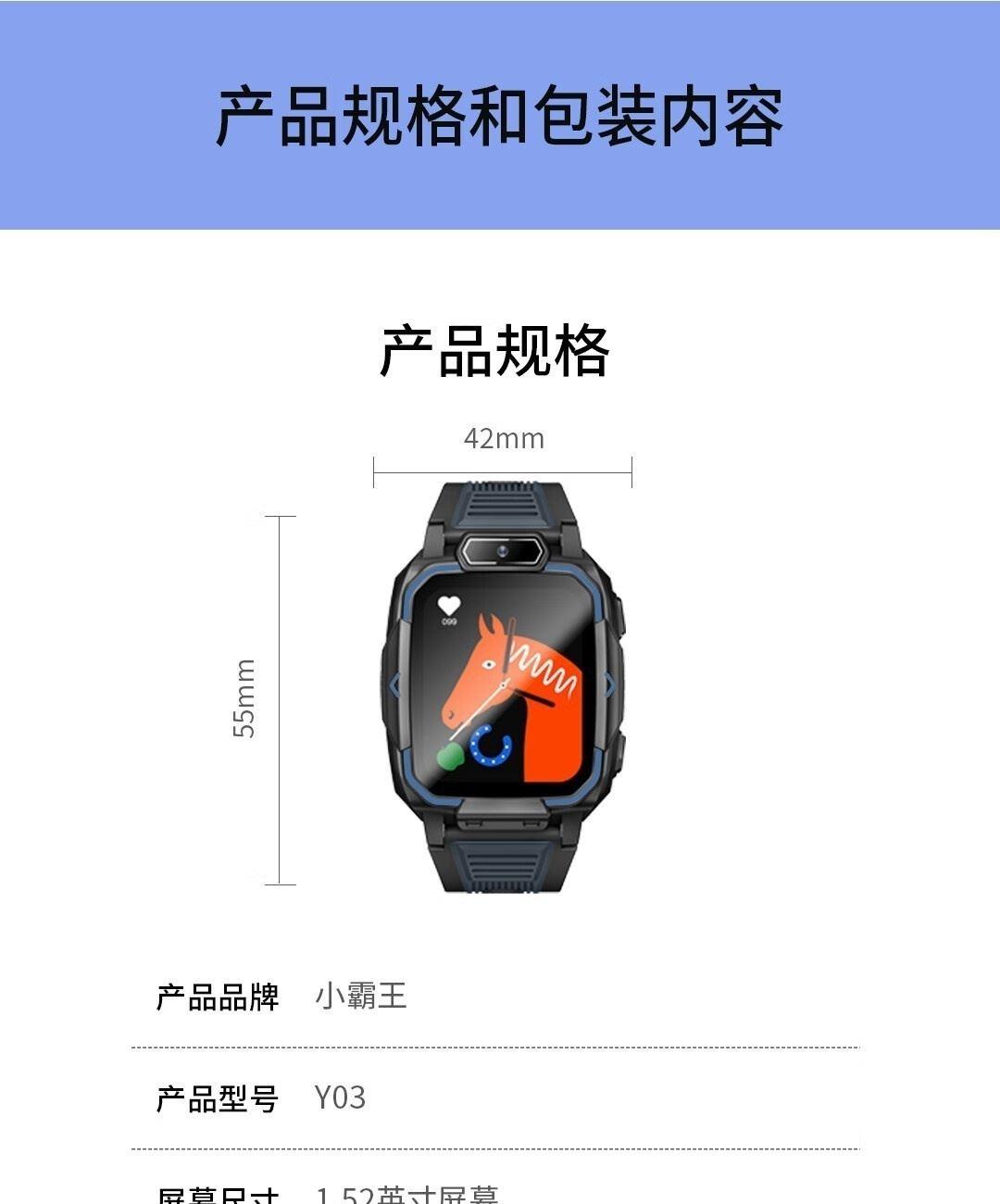 清单:Y03电话手表+充电线+配件+包装盒