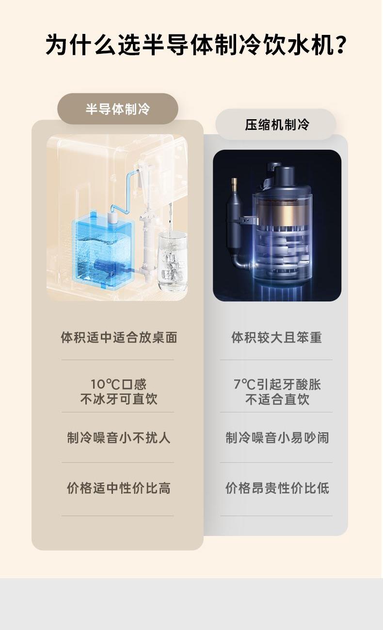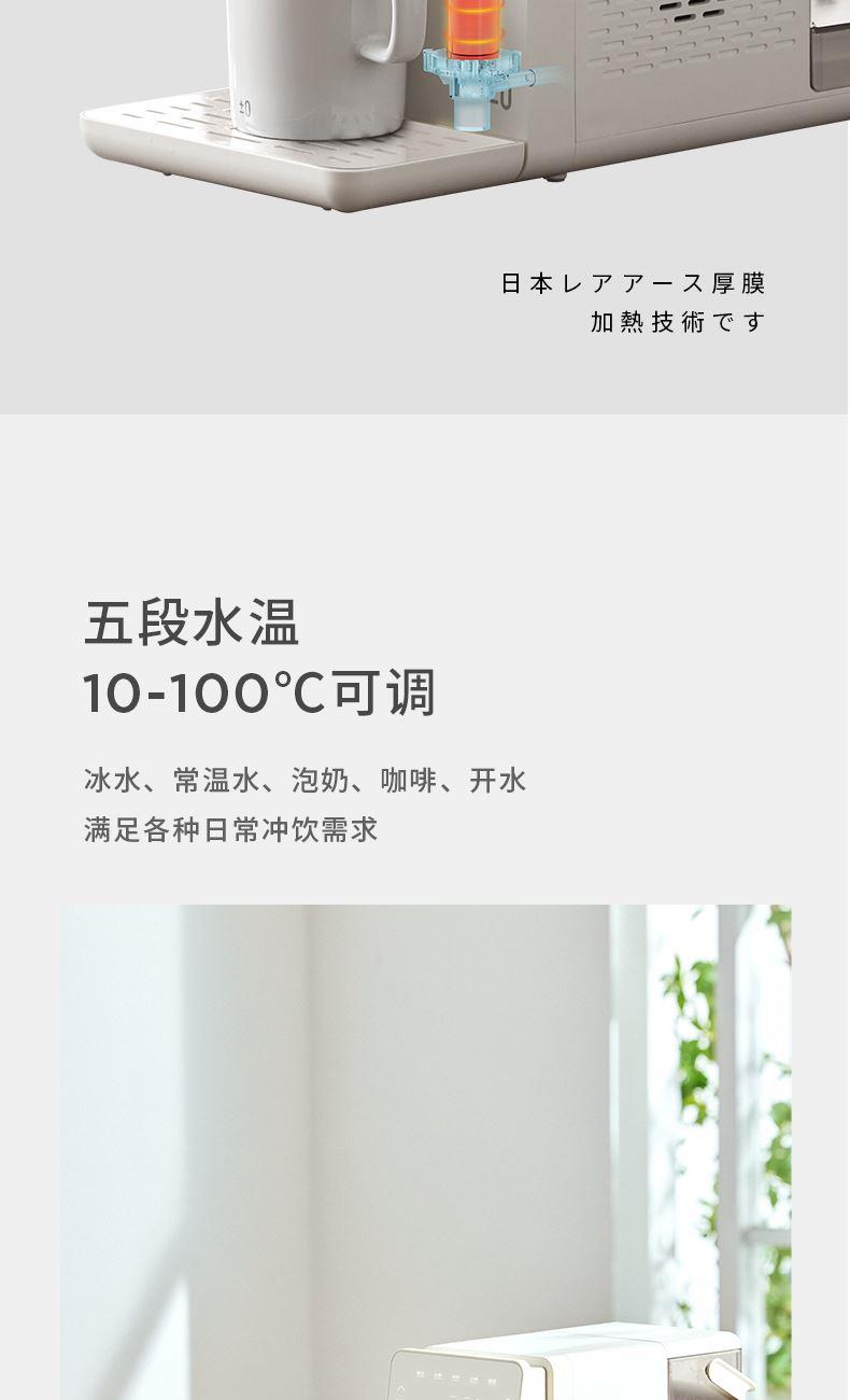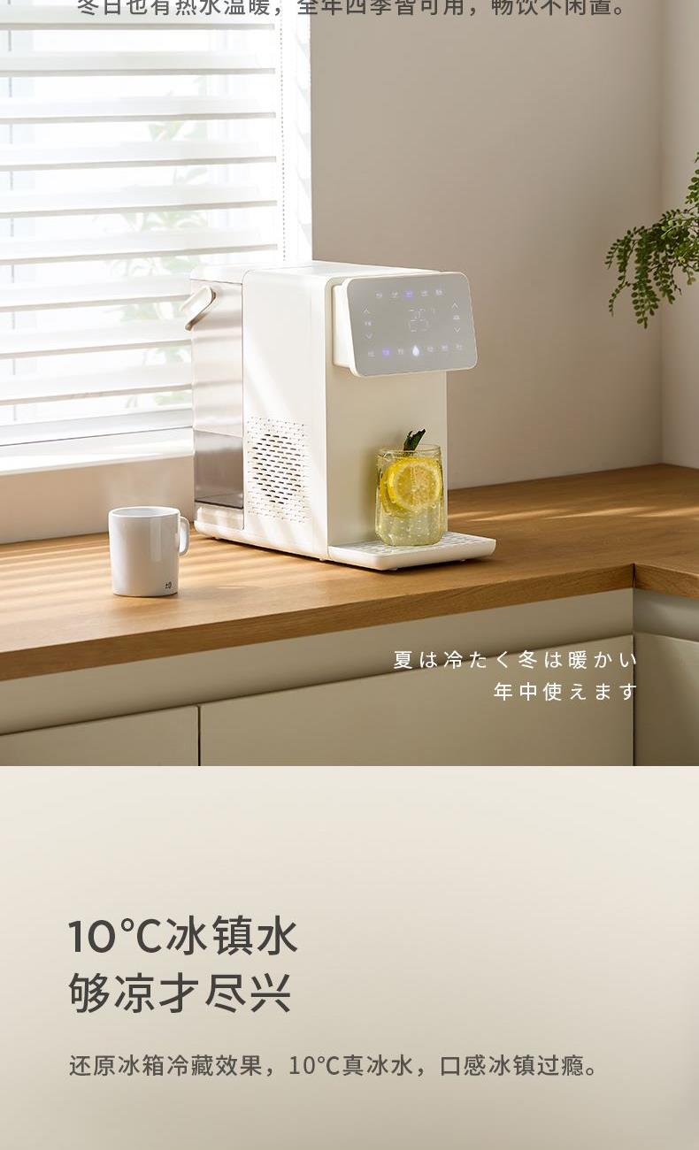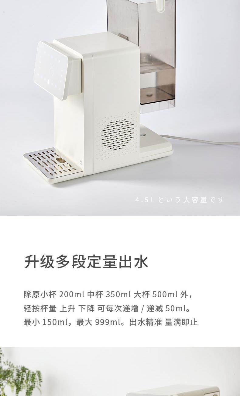 额定功率:2100W 额定电压/频率:220V~50Hz 环境温度:18℃-38℃ 制冷水能力:</等于15℃ 0.6L/h 水箱容量:4.5L 质保:1年 包装清单:机器*1、水箱*1、水箱盖*1、积水盘*1、说明书*1 制冷制热一体 10℃冰镇冷饮、驱散夏热,直饮不冰牙 稀土厚膜加热技术、即开即热 多段定温模式、±1℃可调节 定量取水、轻音制水 水路安全、食品级材质、 0异味,0双酚A 高出水口、直流不喷溅 防干烧、自动停止加热