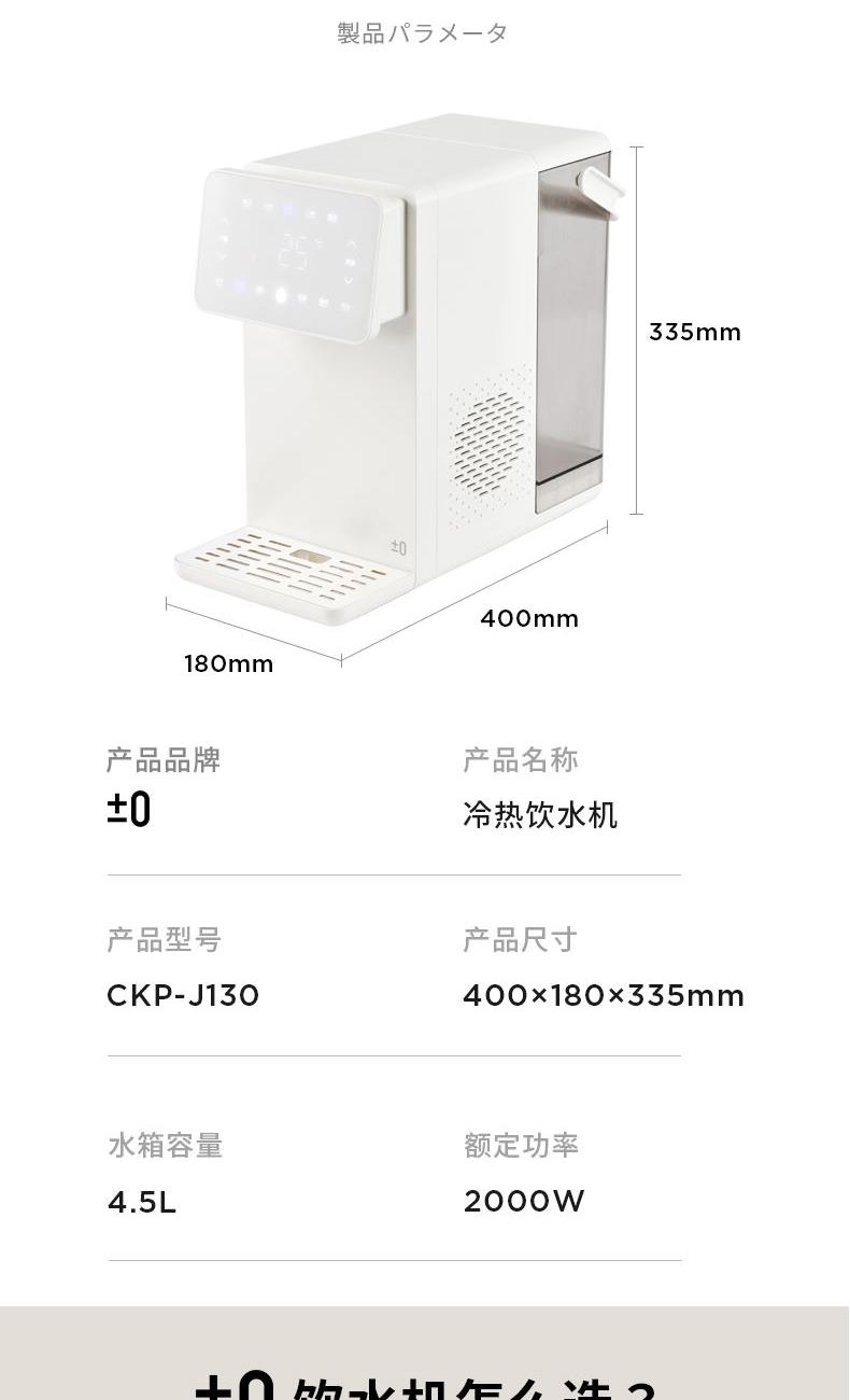 ±0日本正负零冷热饮水机CKP-J130