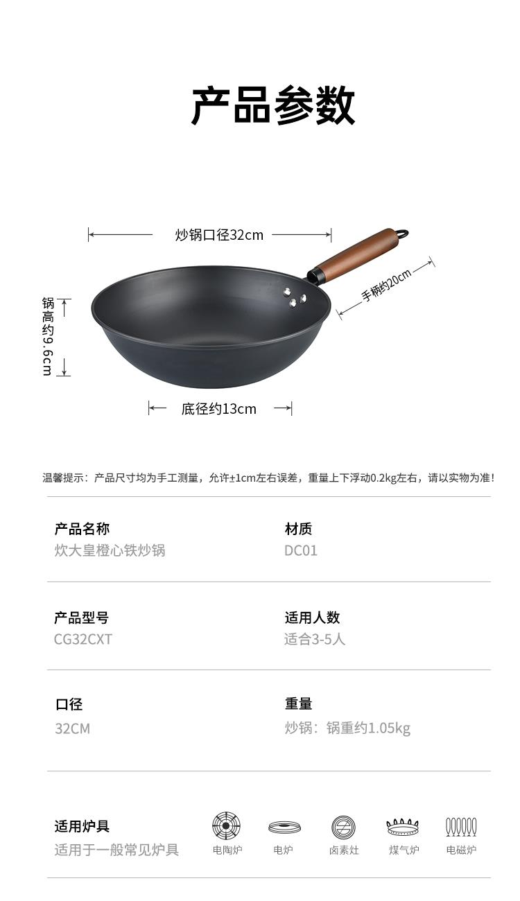 炊大皇橙心铁炒锅32cmCG32CXT