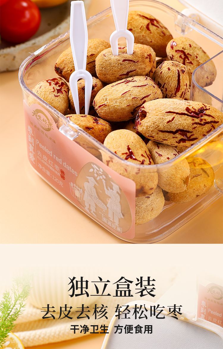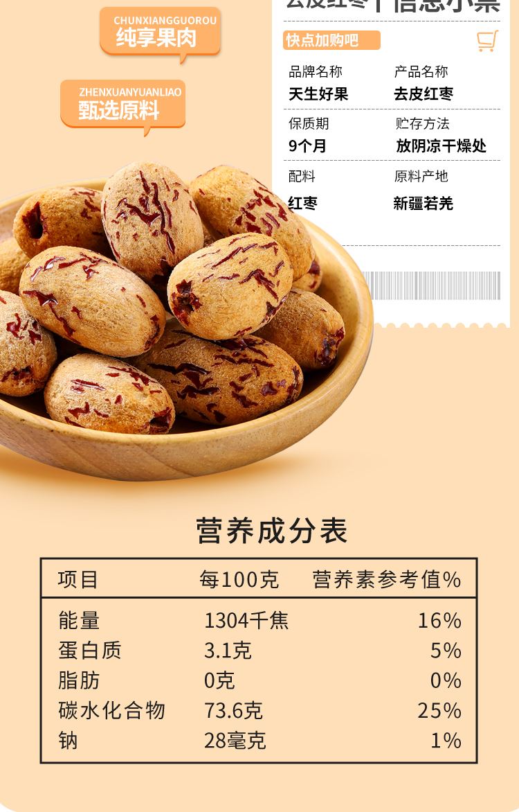 天生好果去皮红枣120g罐装新疆若羌红枣去皮去核即食红枣零食