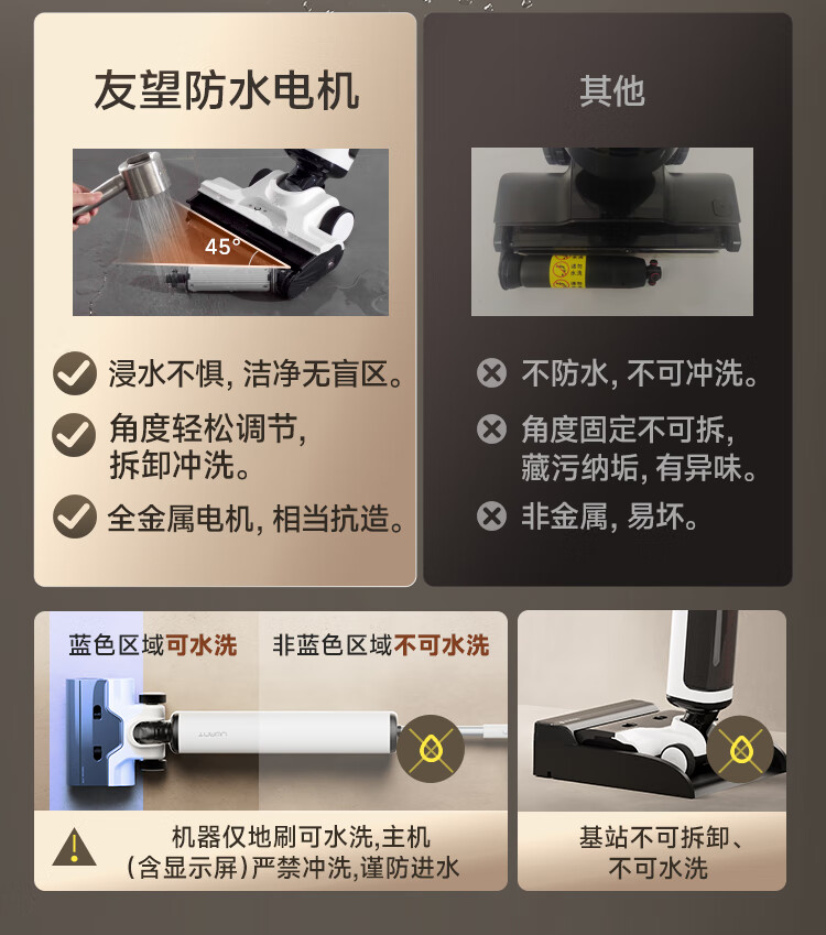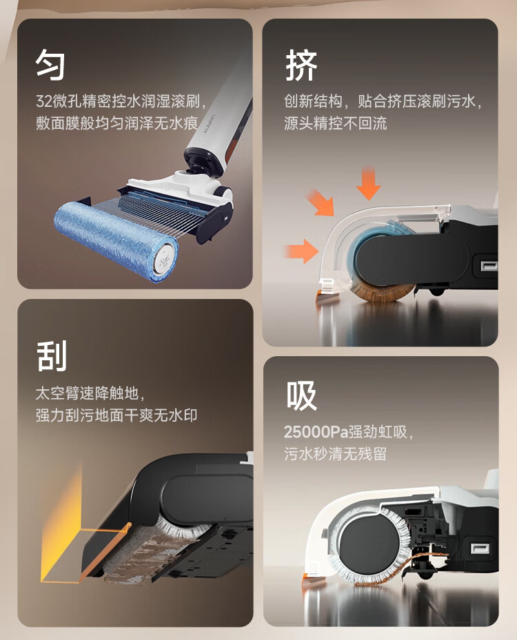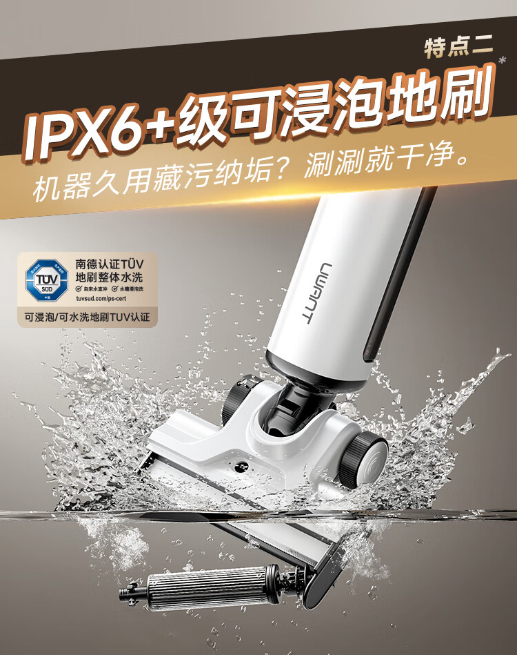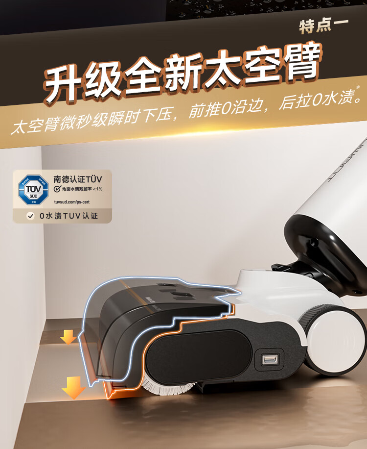 产品参数: 额定功率:300W 续航:50Min 净重:4.65kg 充电时间:4h 电池容量:4000mAh 清水箱:700ml 产品卖点: 分层祛味棒,横贯污水箱杜绝发臭,污水久置也不怕。 0毫米级三沿边清洁,前左右均紧贴墙边,边角清洁无盲区。