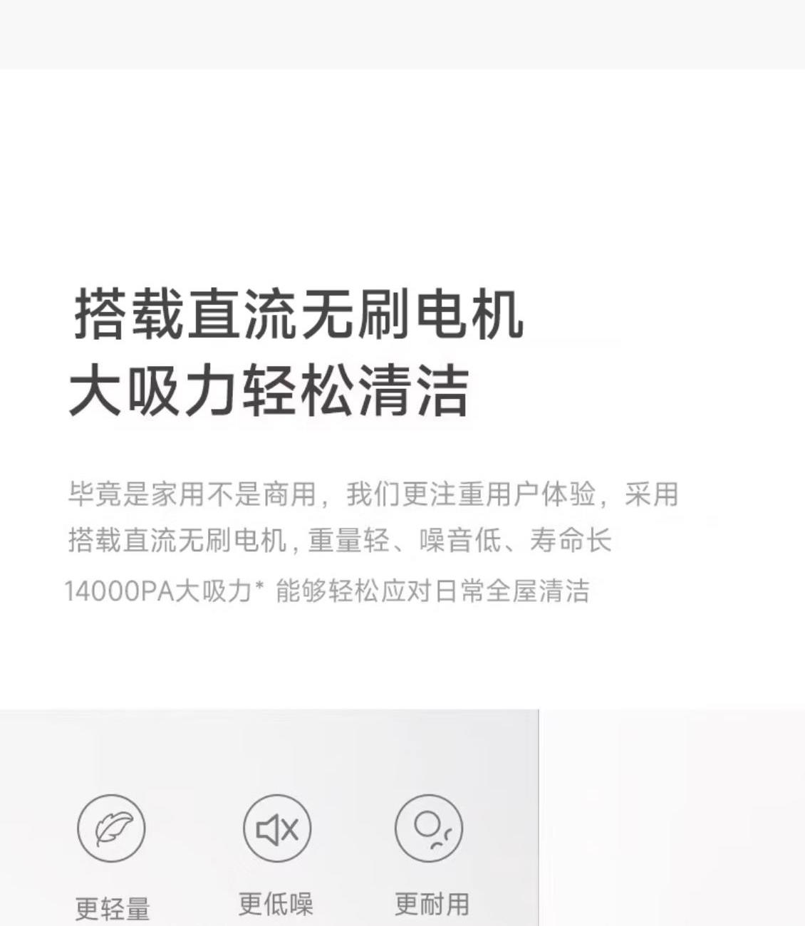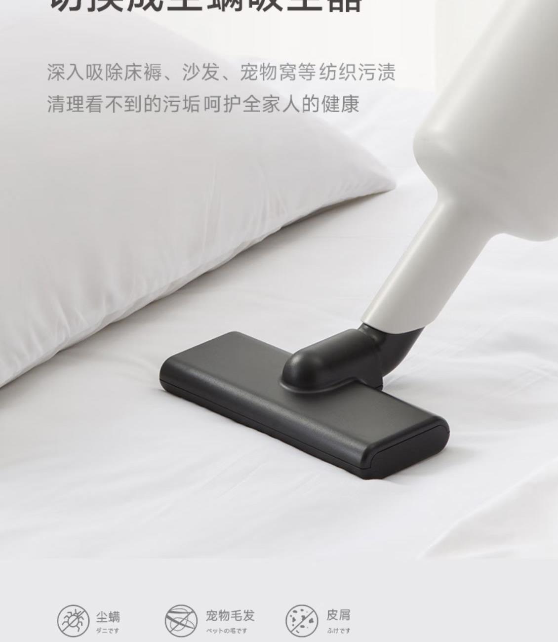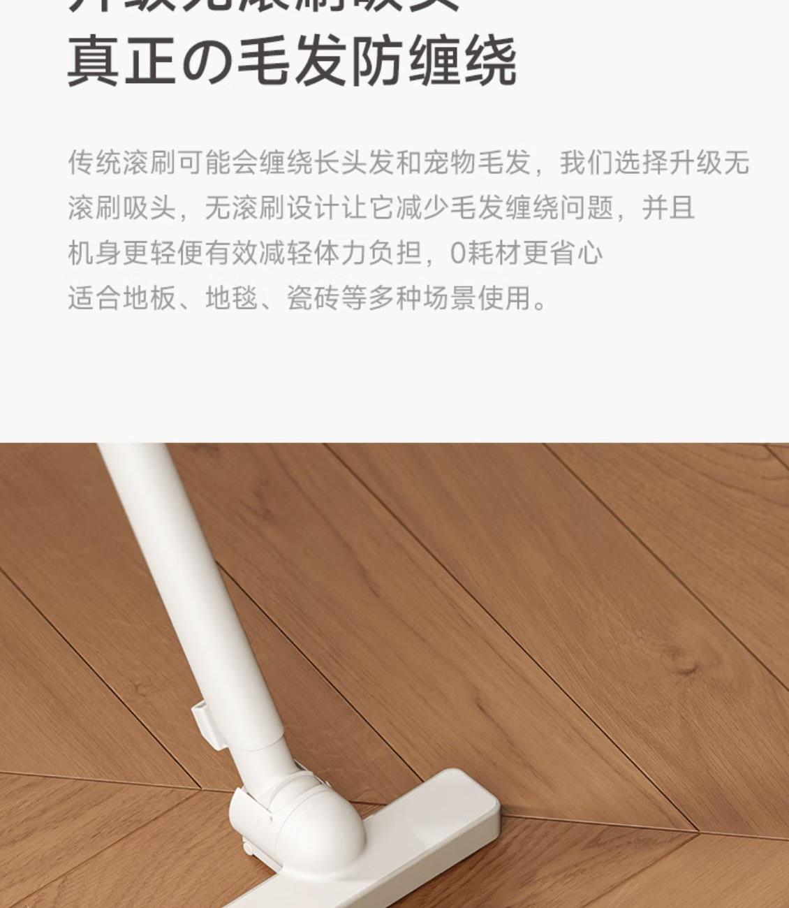 重量:手提组件 约0.8kg 安装了吸头+地板吸头:约1.2kg 电池:锂电子电池 充电时长:约2.5小时 使用时长:标准57分钟,强力16分钟,超强11分钟 集尘盒容量:约0.45L 790g轻量化设计、单手操作也无负担 持久续航,标准模式下连续清洁57分钟 清洁简单,旋转打开即可轻松清洗滤网及集尘盒 6钟清洁方式,满足全屋清洁 日本电产研发的高能锂电池,衰减慢、寿命长、充满电仅需2.5小时