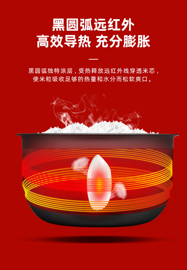 商品毛重:4.4kg; 产品尺寸:28.2*37*24.3cm 类别:家用电饭煲; 操作方式:按键式: 容量:5L; 功能:预约,蛋糕,粥,炖汤;内胆材质:黑晶;加热方式:三维立体加热; 包装清单: 电饭煲、内胆、调理盘、饭勺、汤勺、说明书、质保卡、食谱。