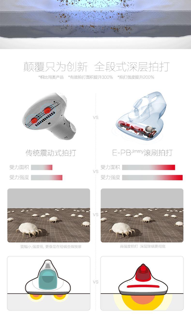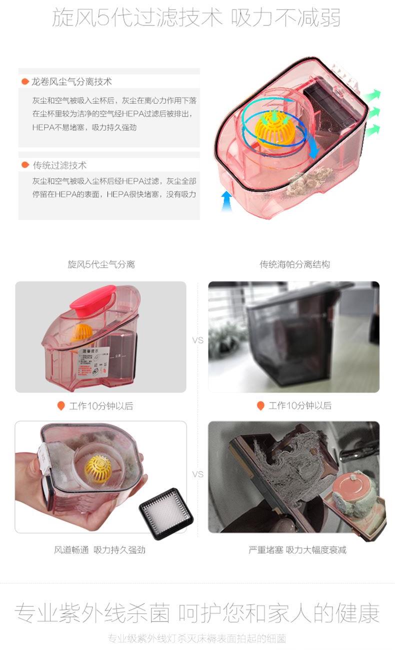 外包装尺寸:彩箱 295*180*365 黄板箱 375*305*380 净重:1.9KG 毛重:2.3KG 17CM超宽吸口 “全段”拍打 智能紫外线开关设计 更安全 旋风5代过滤技术 吸力不衰减 多重降噪技术 声音更轻柔