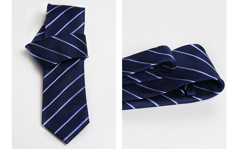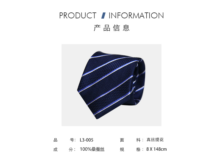 真丝领带 蓝黑条纹领带 商务 送礼伴手礼 精美礼盒礼袋包装 L3系列 蓝黑条纹 成分:桑蚕丝 工艺:真丝提花 尺寸148 x 8cm