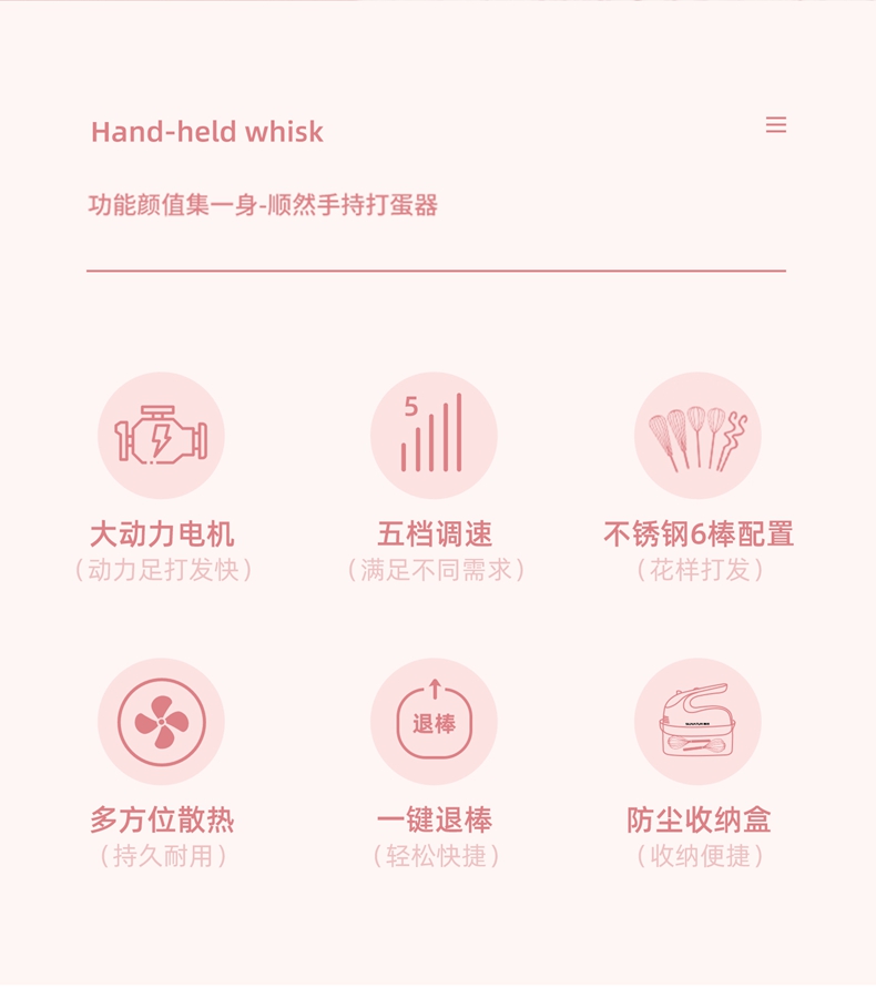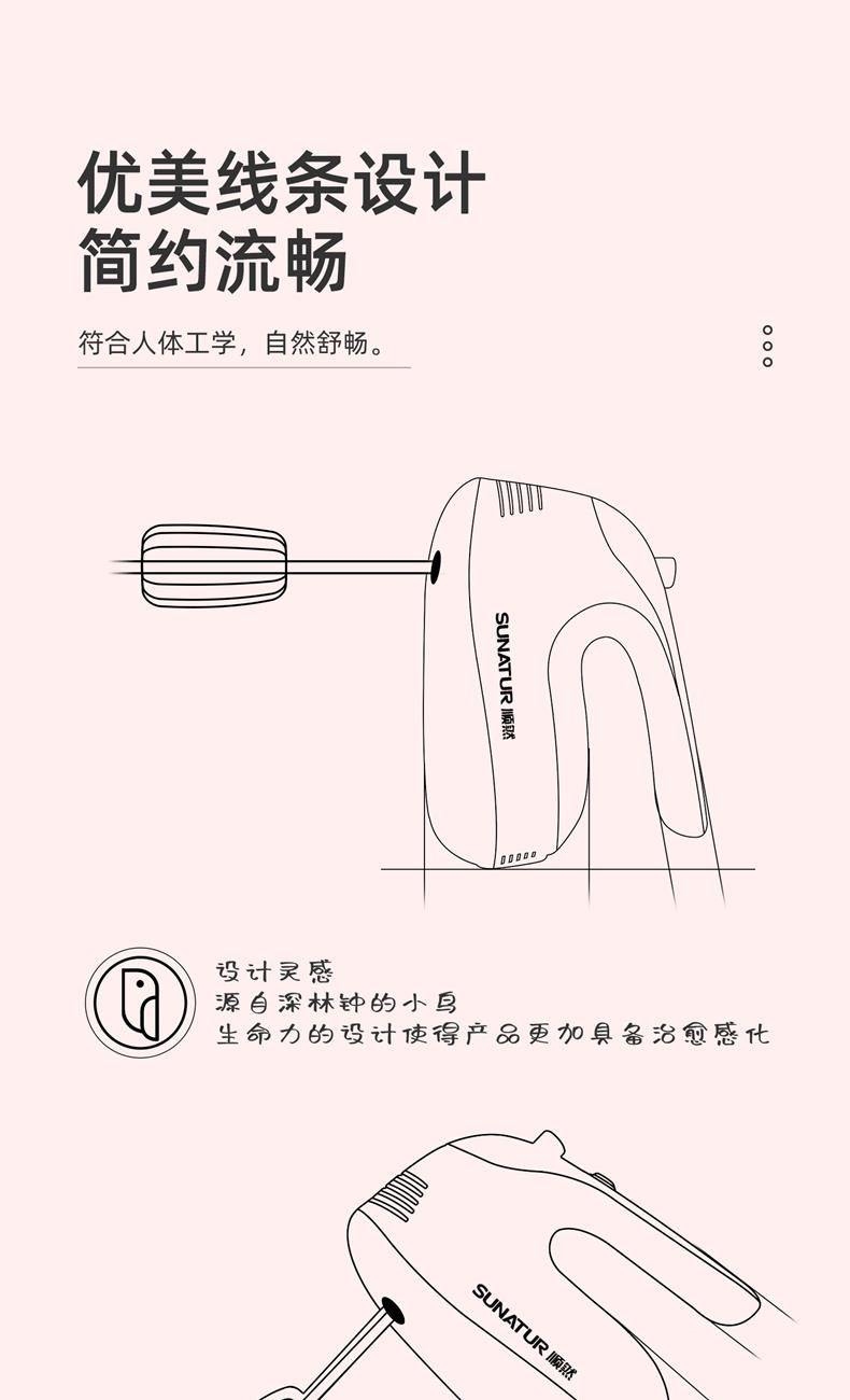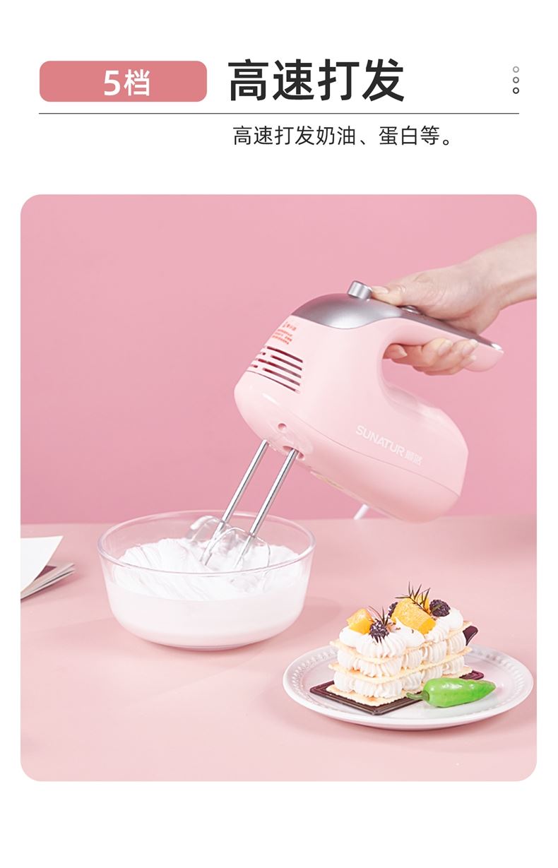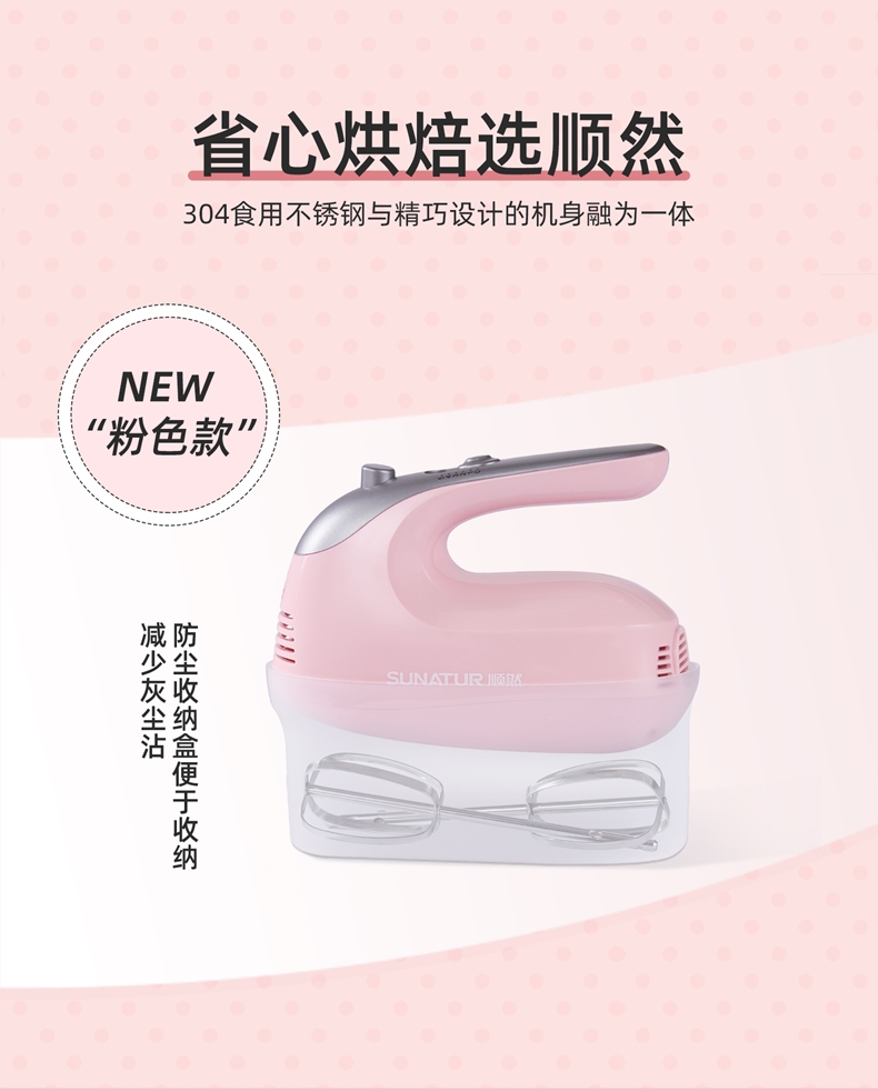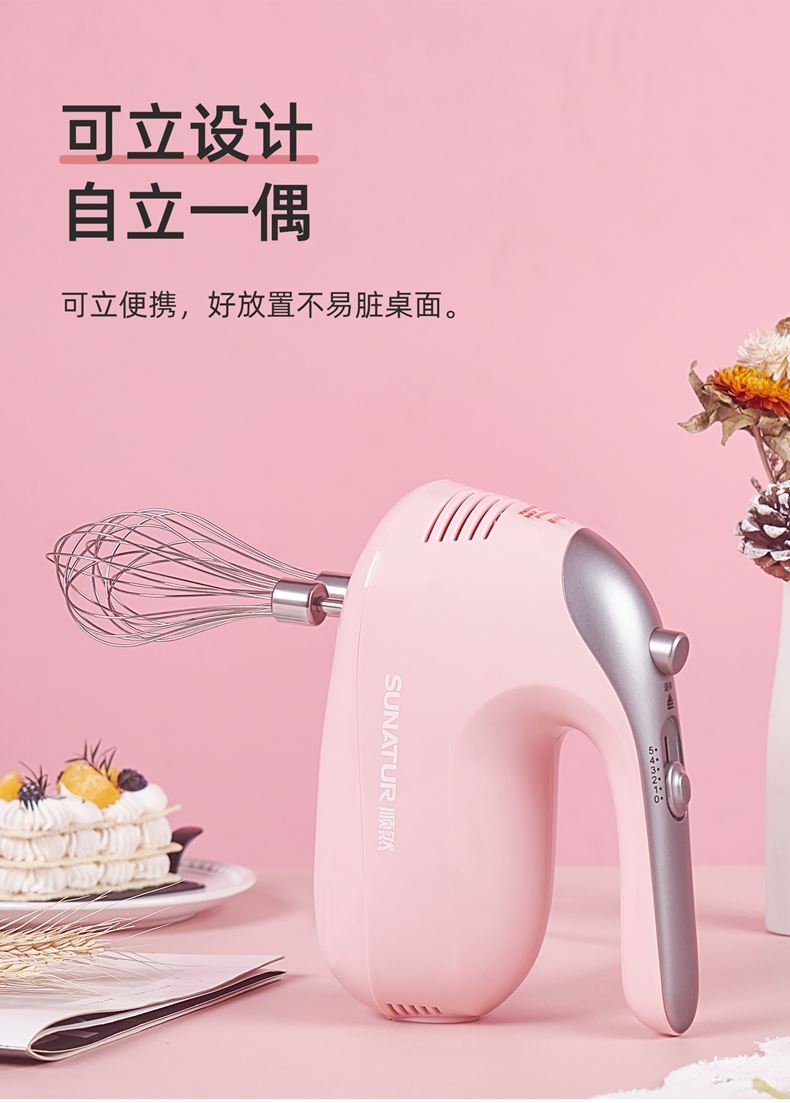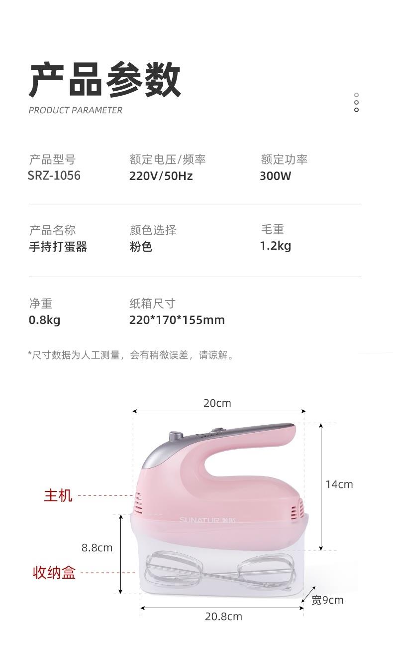 顺然SUNATUR粉色打蛋器六棒收纳款SRZ-1056
