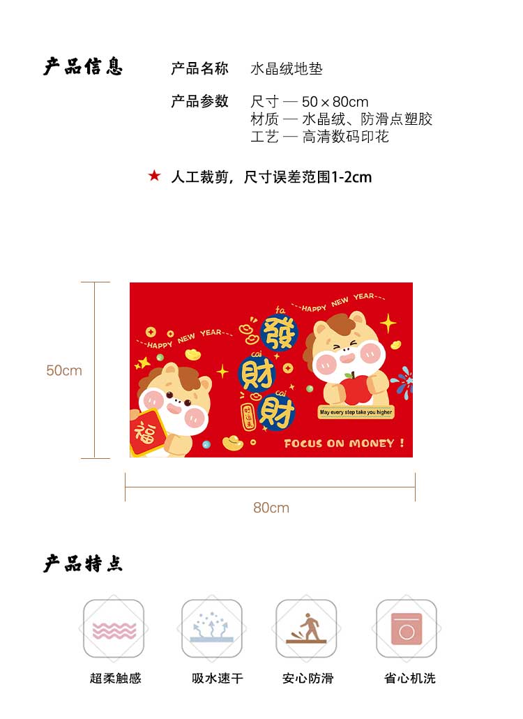 贺瑞2026年马年入户门地垫、广告地垫-發财财