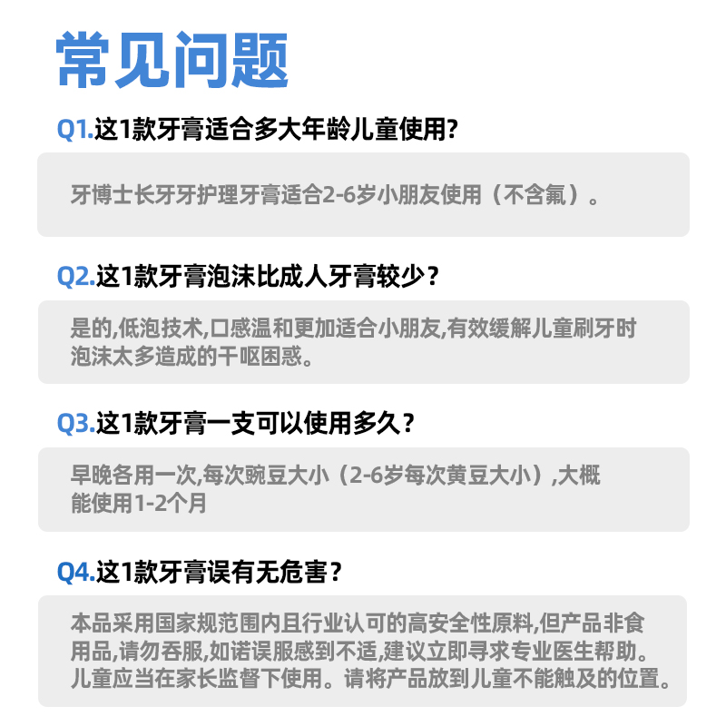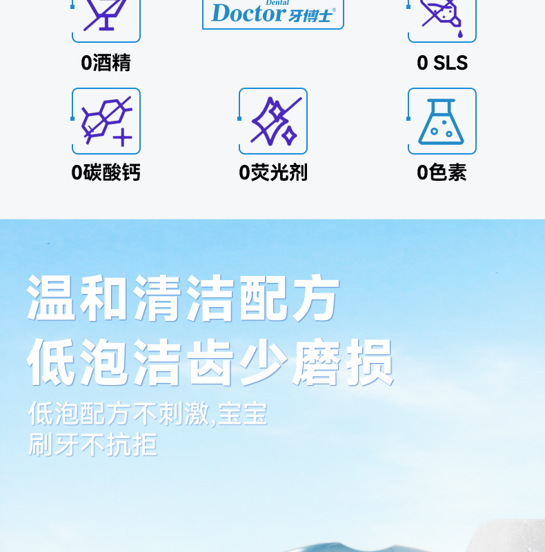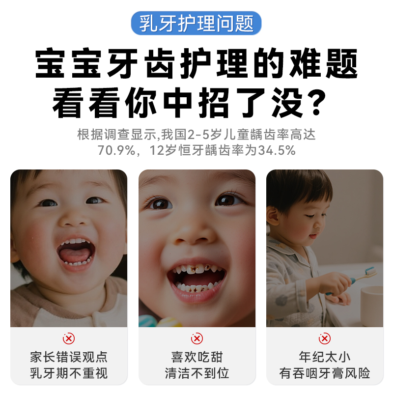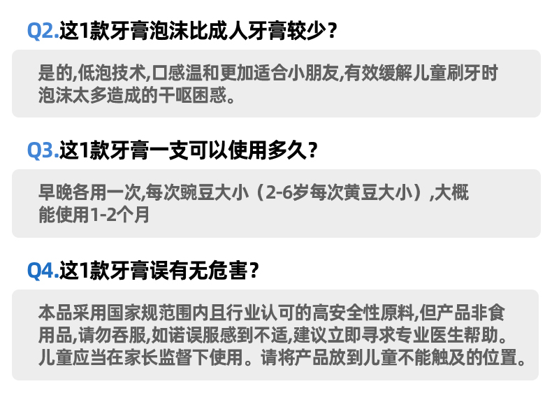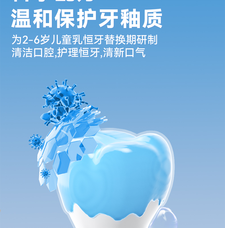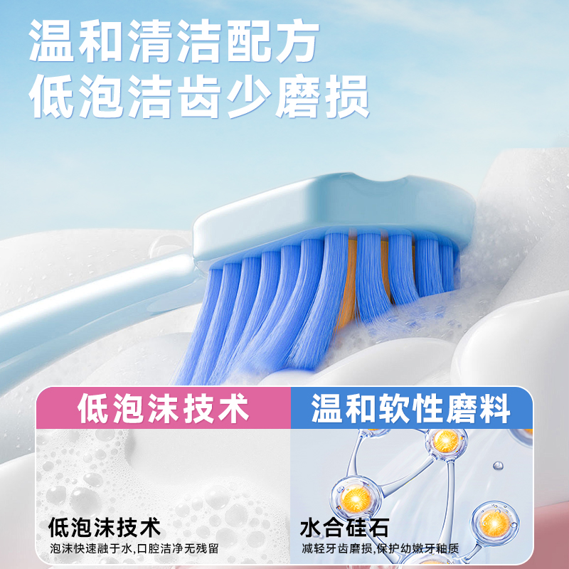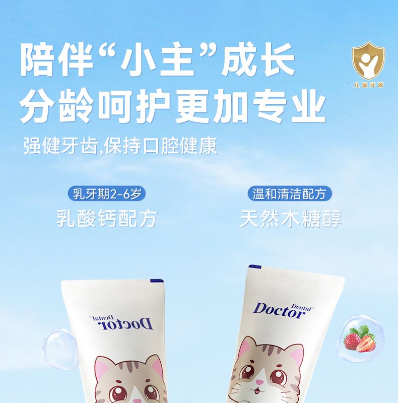 容量:50g 保质期:3年 1.乳酸钙配方,促进乳牙的钙化成长 2.水果香型,帮助宝宝更好适应刷牙 3.温和清洁配方,低泡洁齿少磨损 4.天然木糖醇,温和清洁牙齿 维护口腔健康