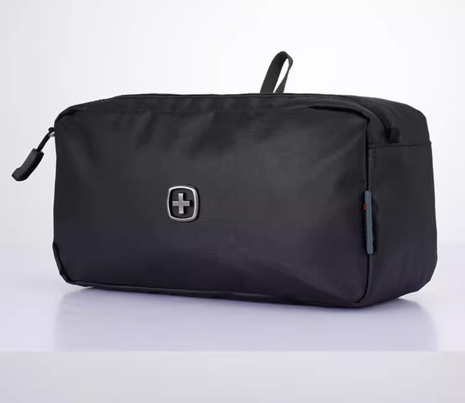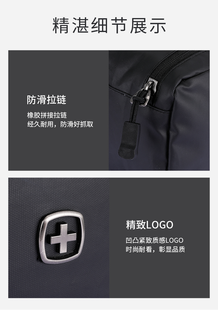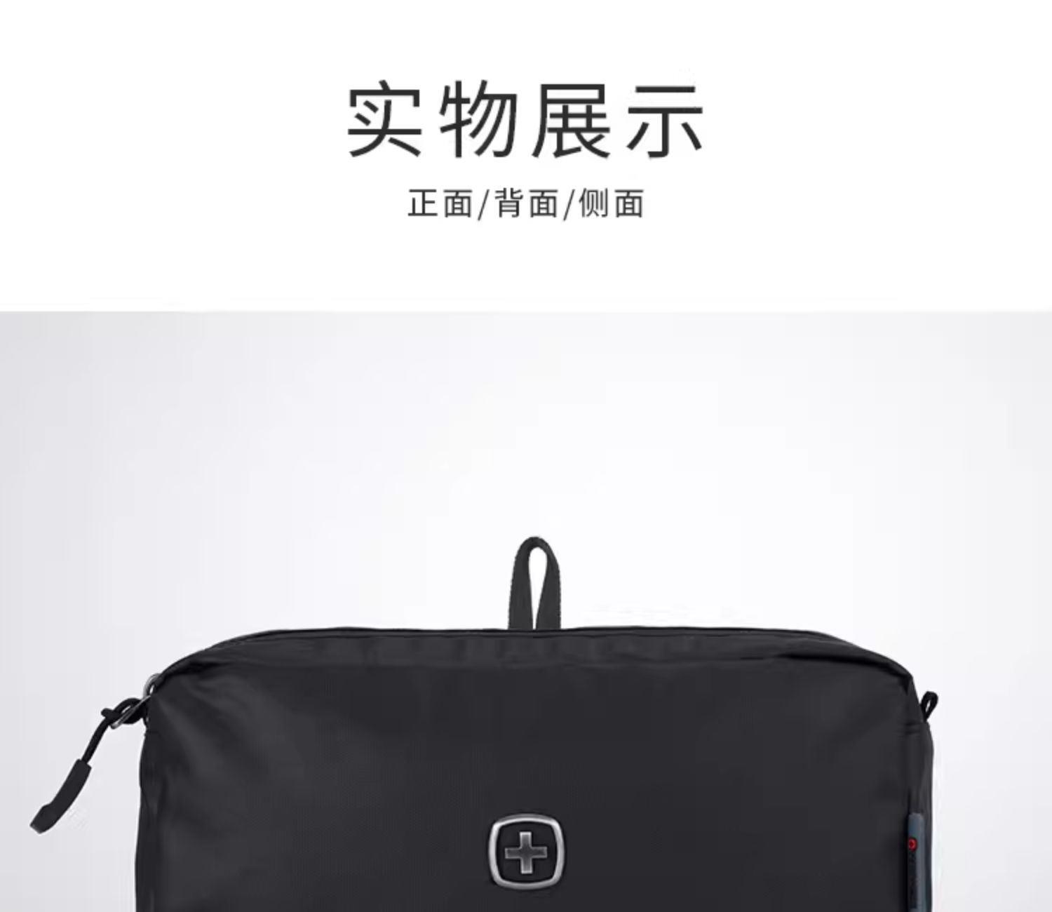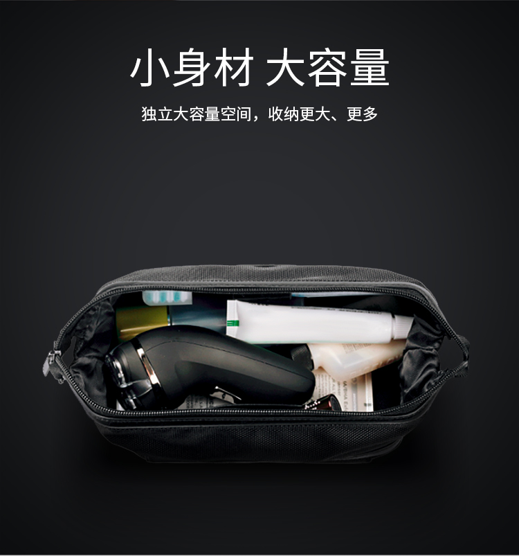 品 牌:WENGER威戈 颜色:黑色 尺寸:250*130*90 mm 容量:2.9L 净重:0.12kg 材质:涤纶(防泼水聚酯纤维) 1、小身材 大容量:独立大容量空间,收纳更大、更多; 2、强韧防水防水涂层面料+PVC里料双面防水,安全保护随身器材; 3、多场合使用:自带挂扣、手提或挂在包上都很方便; 4、防滑拉链橡胶拼接拉链,经久耐用,防滑好抓取; 5、精致LOGO,凹凸紧致质感LOGO时尚耐看,彰显品质。